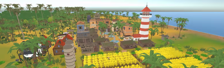 Build and manage a tropical island economy, optimize production chains, research new technologies, and defend your growing settlement against pirate threats in this relaxing yet strategic city-building game.