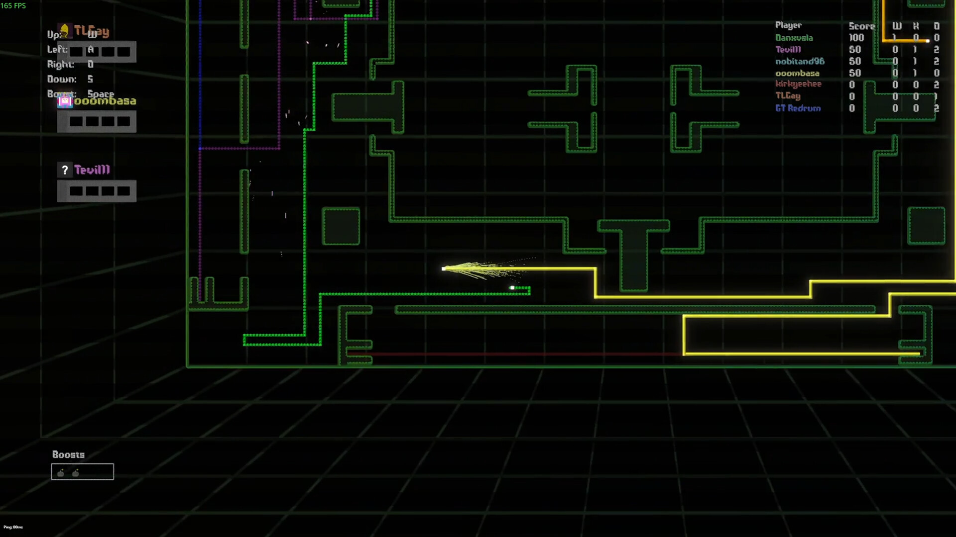 When the game starts players move and never stop, leaving behind trails that fills the grid. One wrong move and you're dead until the next round. Use the trails you leave behind to your advantage to trap and block off other players, or secure a piece of the grid for yourself.