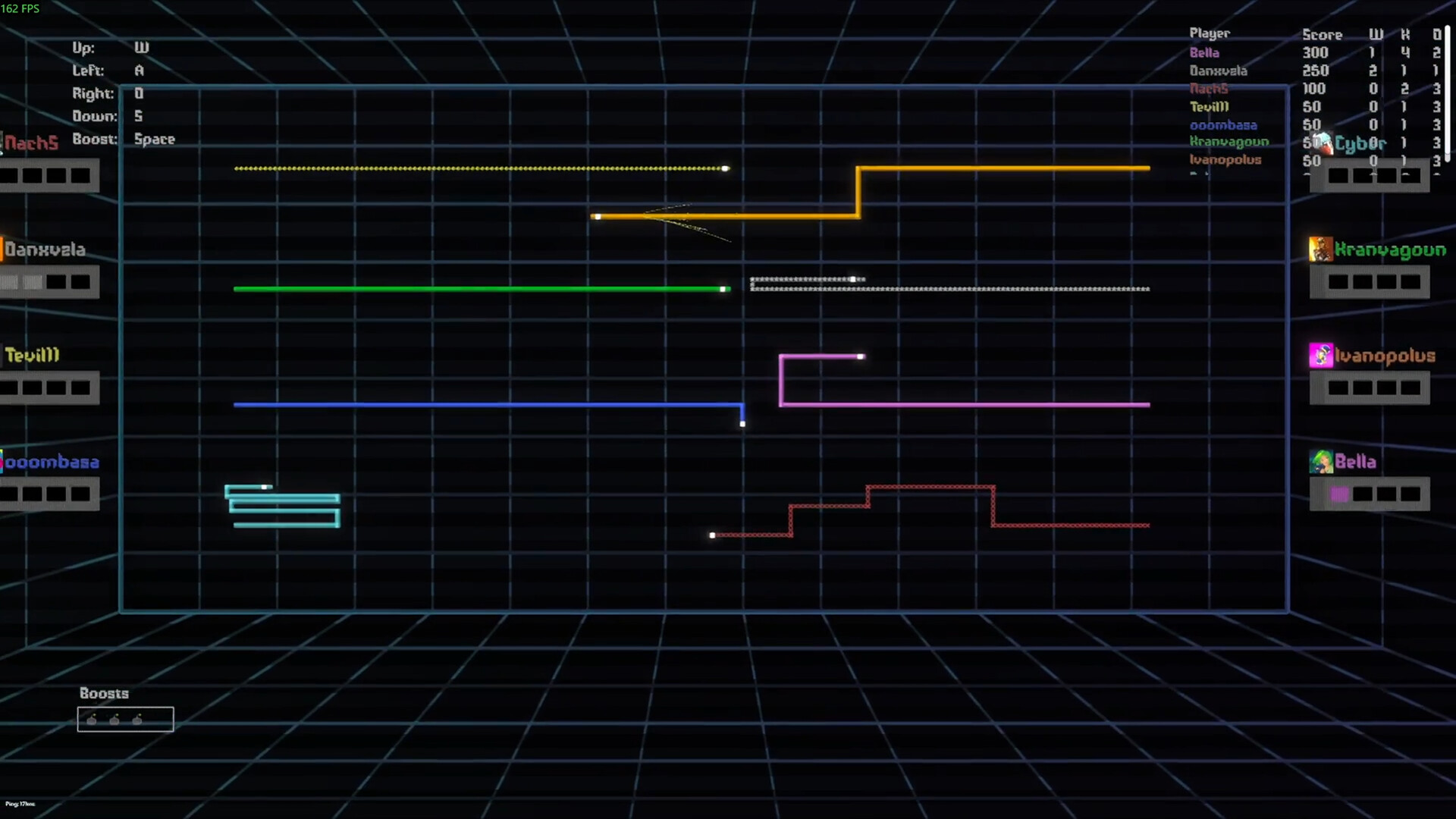 When the game starts players move and never stop, leaving behind trails that fills the grid. One wrong move and you're dead until the next round. Use the trails you leave behind to your advantage to trap and block off other players, or secure a piece of the grid for yourself.