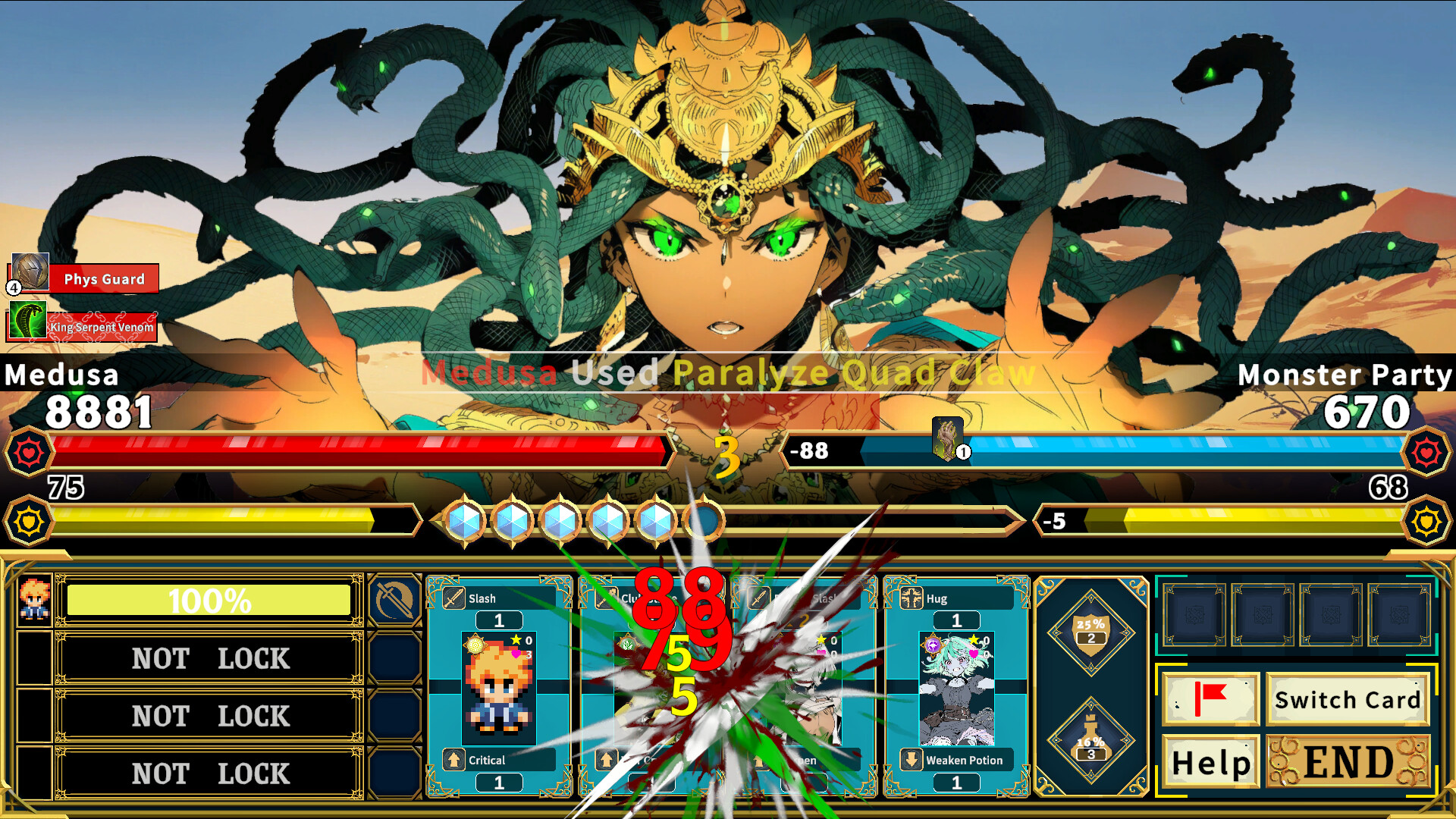 Combat is inspired by Rance X, with additional mechanics based on personal preferences, including: