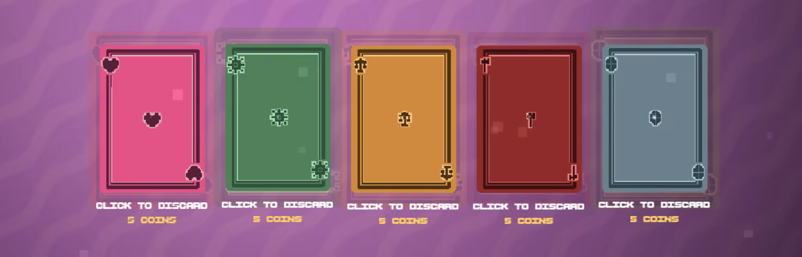 Spend coins to unlock tactical options that influence draws, outcomes and survivability. They arnt mandatory, but using them intelligently can push a run far beyond what pure luck allows.