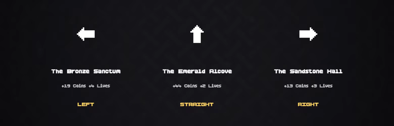 Different paths lead to different dealers, modifiers, rewards, and risks. Some routes offer safety and stability, while others promise large amount of coins at a cost.