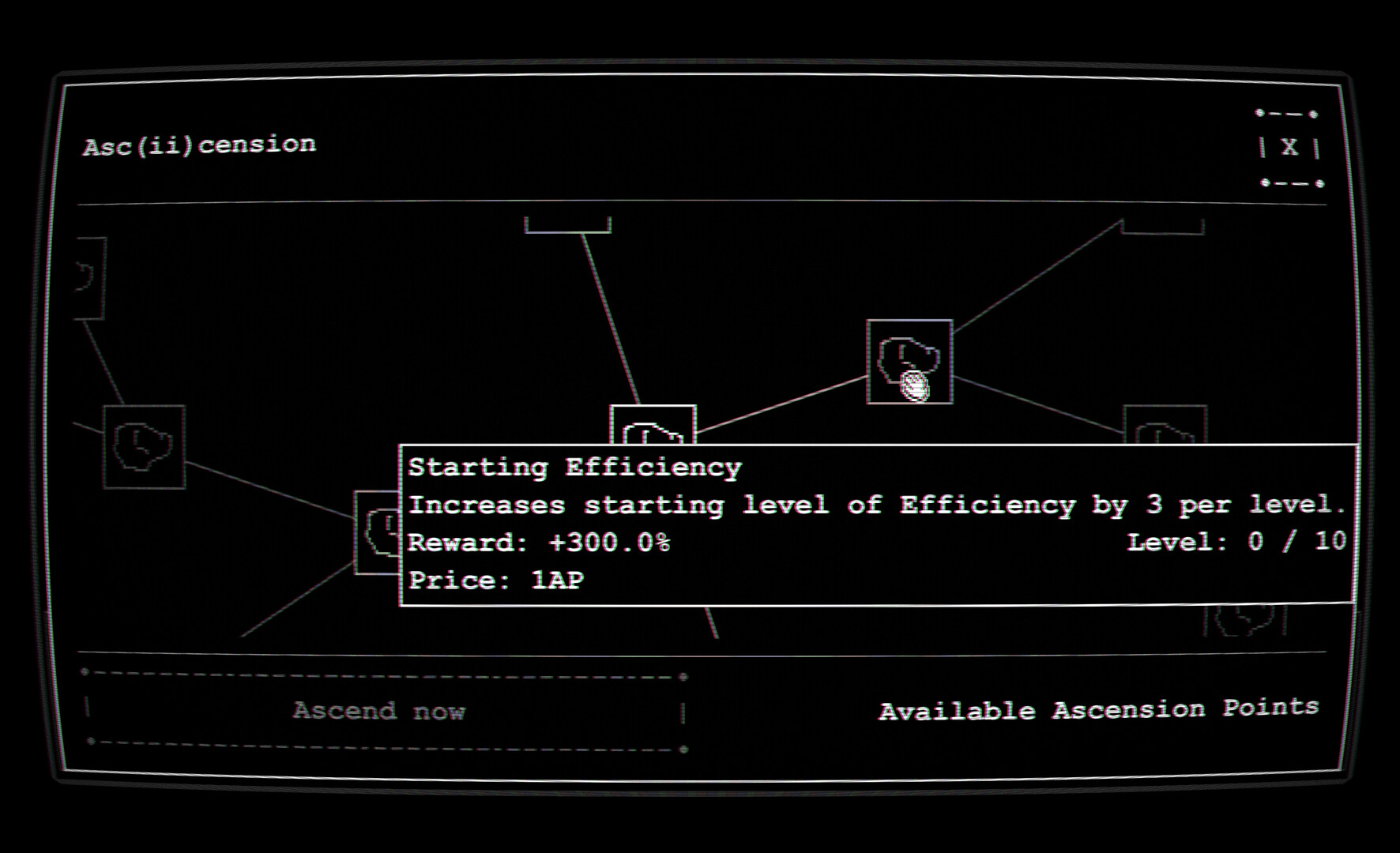 Immerse yourself in the world of ASCII art. Create works of art from characters. Build factories, upgrade them, and expand your production capacity. Invest in blueprints and reach milestones to earn bonuses. Use the ascension system for additional benefits.