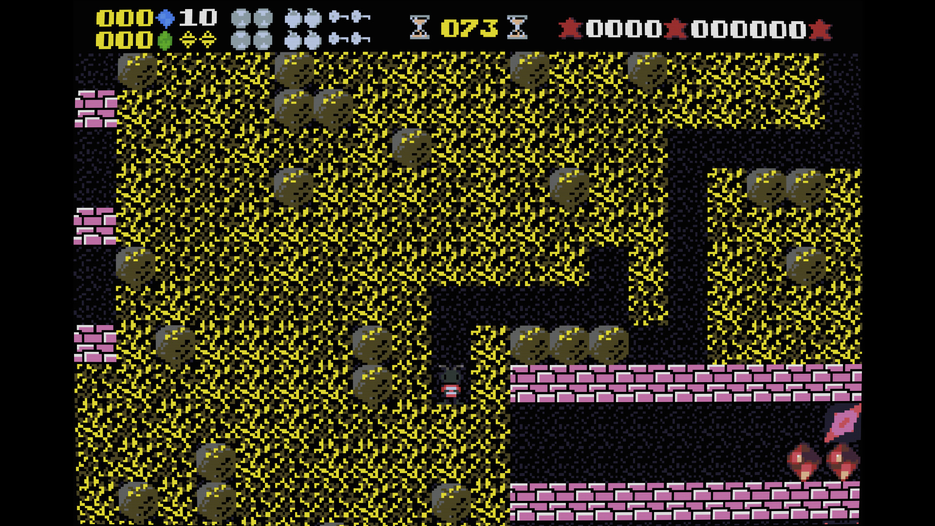 Nano must dig through caves and dungeons, collecting gems and diamonds and reach the exit, while avoiding various types of dangerous creatures as well as falling rocks or get killed by an underground explosion.