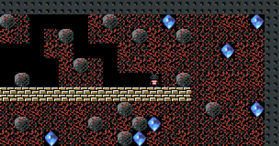 Nano must dig through caves and dungeons, collecting gems and diamonds and reach the exit, while avoiding various types of dangerous creatures as well as falling rocks or get killed by an underground explosion.