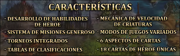 “Spellweaver es un juego de cartas digital gratis fiel a los clasicos del género, añadiendo varias características únicas para una nueva experiencia de juego. Con un énfasis en profundas y variadas estrategias, ofrece un sin fin de horas de diversión en partidas casuales, contra la IA, partidas clasificatorias, drafts y torneos.”
