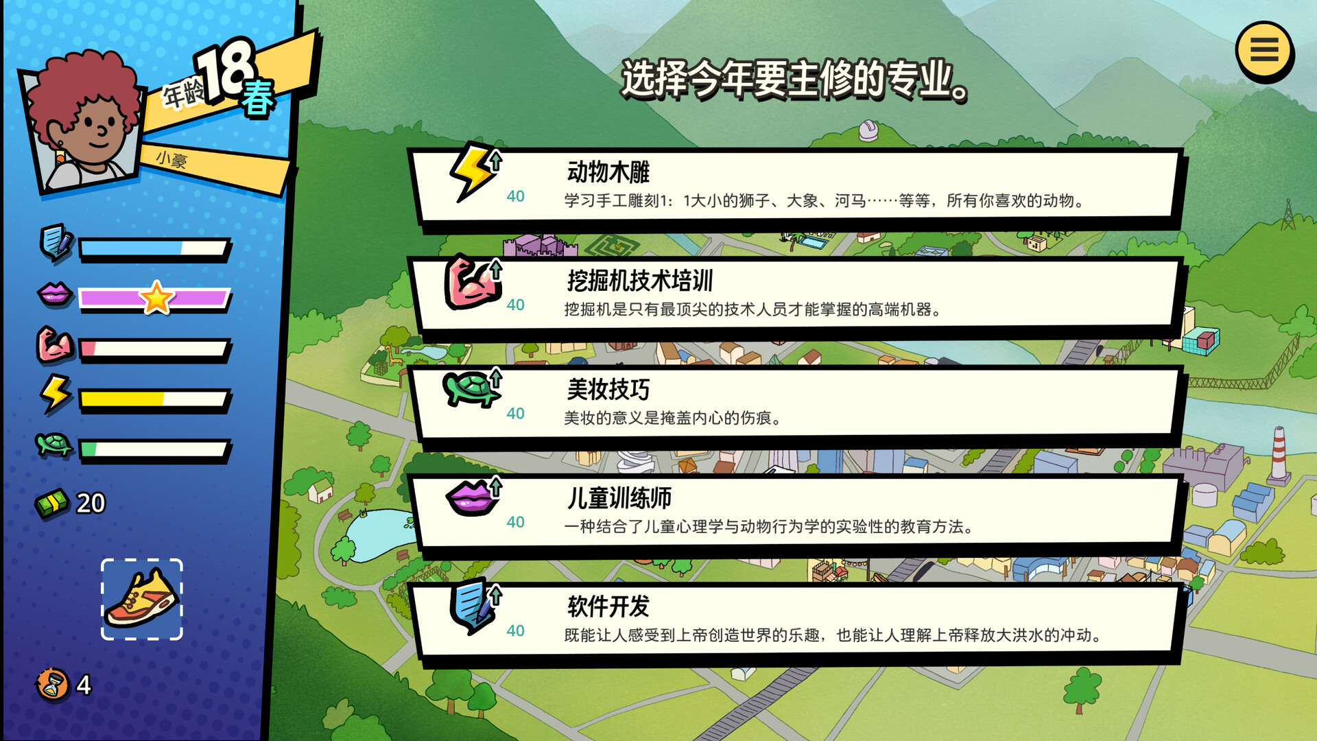 做牛马不如做僵尸——在这款回合制的人生模拟器游戏中,养成形形色色的人类并将它们转化成你的僵尸伙伴。人类的属性与职业将决定僵尸形态与能力。组建僵尸小队,在自动战斗中攻占河马市。