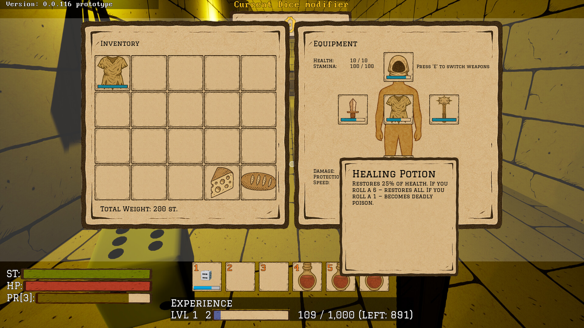 A dark paper-styled dungeon crawler where dice decide your fate. Explore procedural dungeons, fight monsters, loot artifacts, and survive the drop.