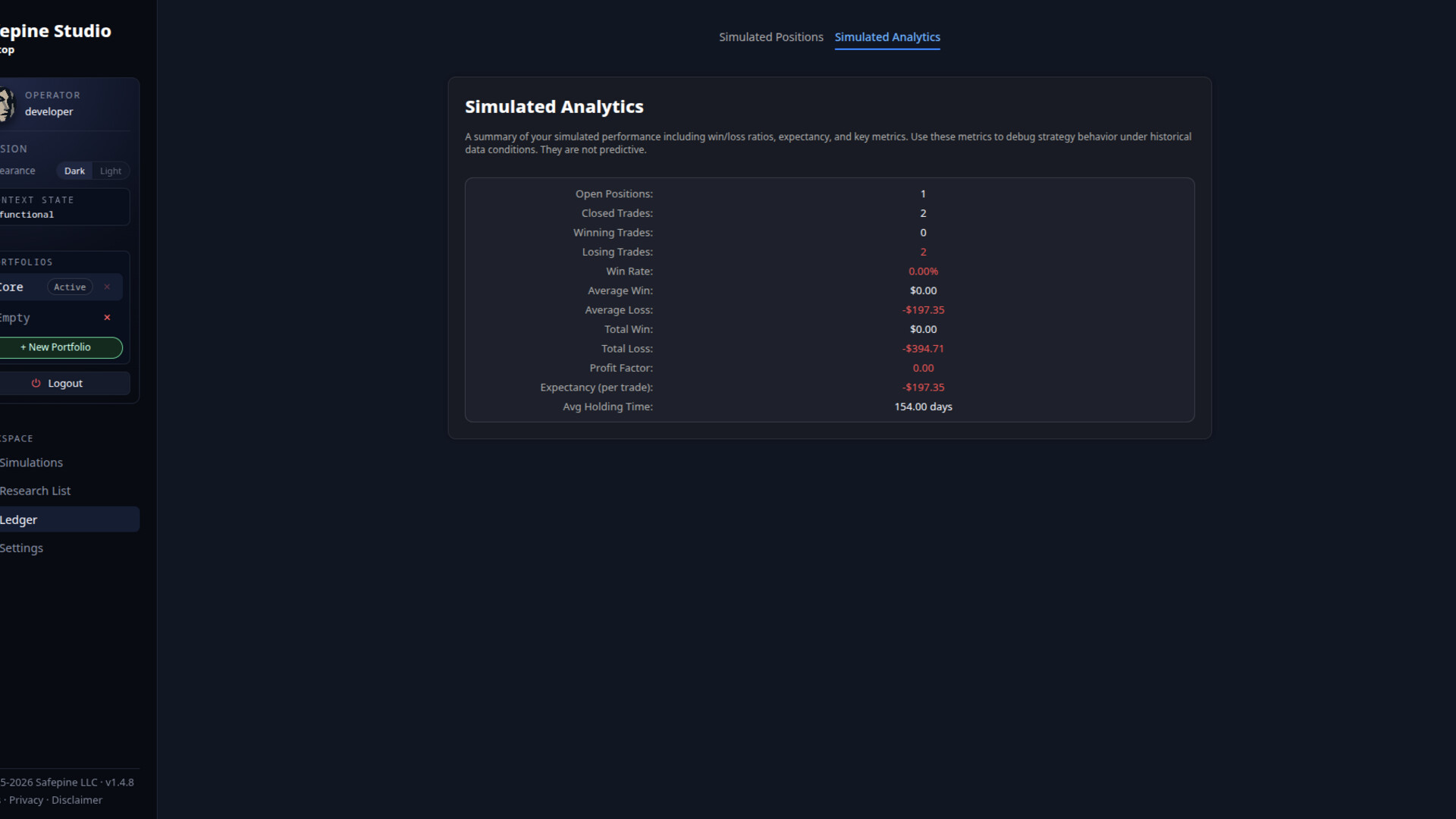 Safepine Studio is strictly a software tool. It does not provide financial advice, manage funds, connect to brokers, execute trades, or automate decisions.