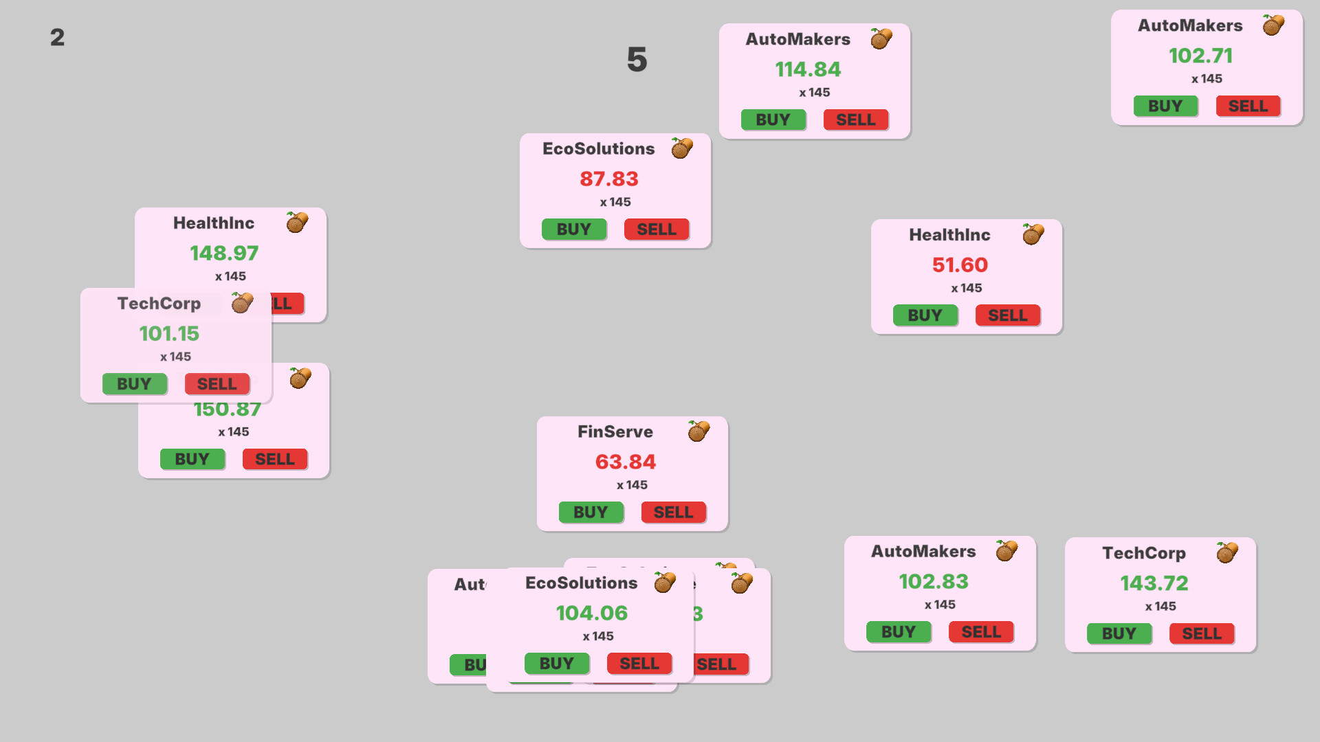 Each round introduces new stock windows with random companies, quantities, and price momentum. Click on buy or sell, wait for the square-off timer, and see how upgrades shape your balance. Level up, unlock new sectors, improve momentum behavior as the market grows more chaotic.