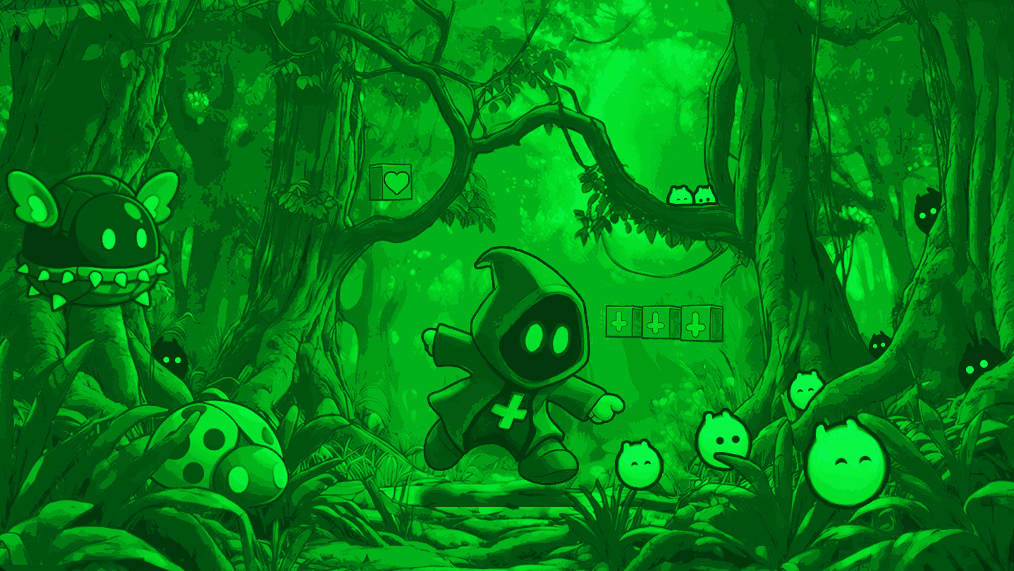 A darkly nostalgic 2D platformer with Game Boy roots and modern juice.