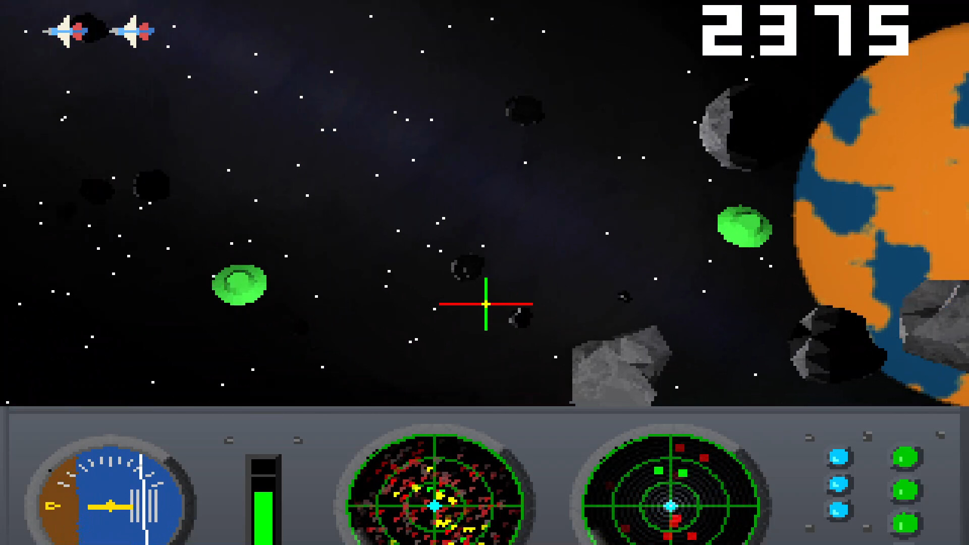 Blast through 3D asteroid fields, crack open rocks for treasure, and fend off alien raiders who steal your loot or attack on sight. Fast‑paced first‑person retro arcade action meets pixel‑powered chaos in deep space.