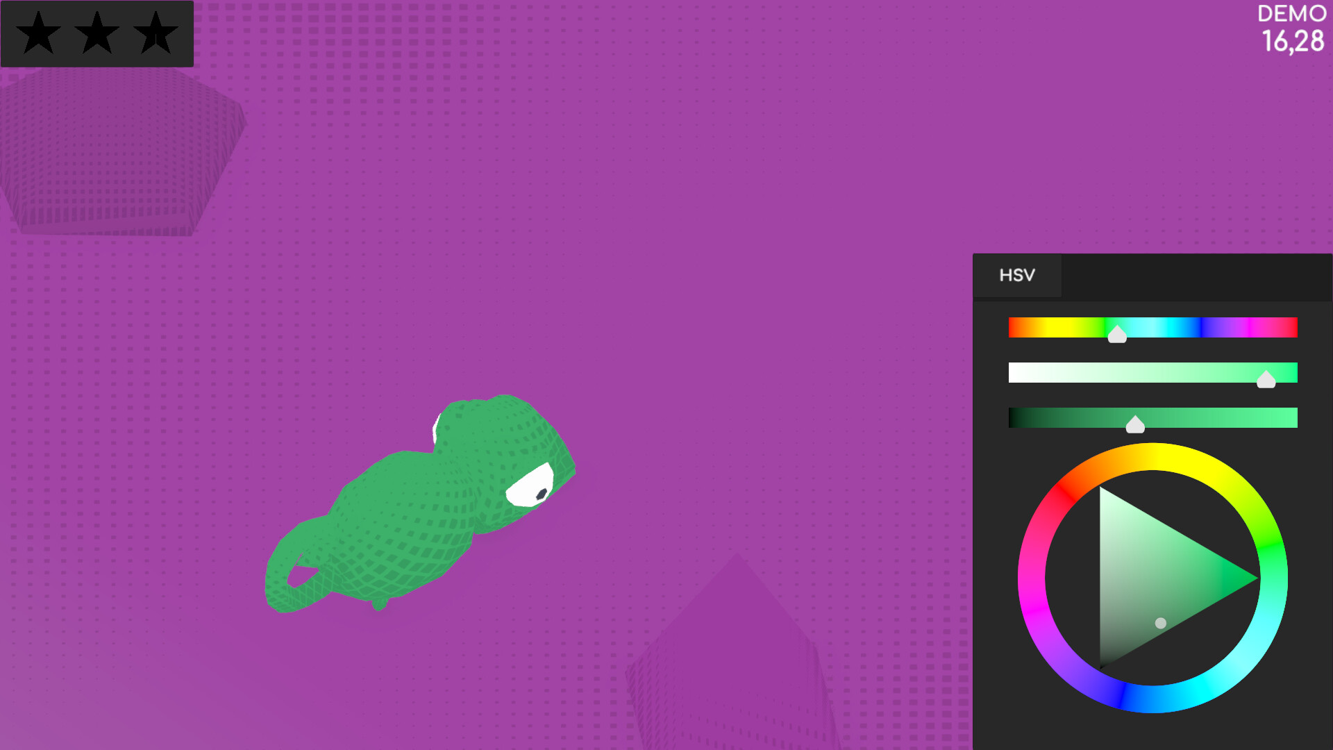 You are a chameleon in a constantly changing digital world. To move forward and stay safe, you must blend in perfectly with the ground. But there’s a catch: you don’t just pick a color from a palette—you must build it manually using professional color models. Achieve a "Perfect Match" to earn stars. Getting 5 stars in a row within the same color mode will allow you to progress and unlock more advanced game modes, from RGB to the challenging Lab space.