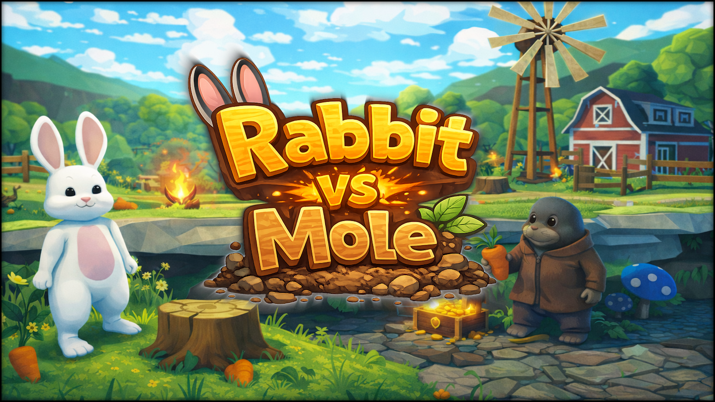 Rabbit vs Mole is an asymmetric farming game where peaceful agriculture meets clever rivalry. Choose your role and experience two completely different ways to play — above ground or below it.