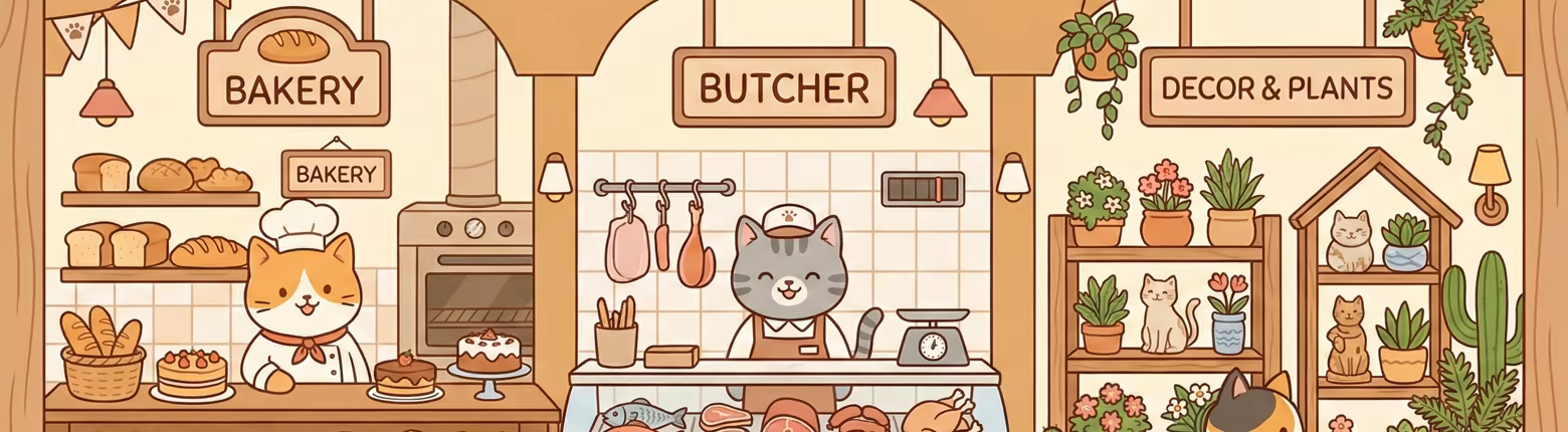 The supermarket simulator where everyone is a cat. Start with a humble little shop and turn it into a feline retail empire. Buy over 120 products from suppliers, set your prices, stock shelves, and serve cat customers ranging from rushed shoppers to demanding VIPs like Baron Sardine and Madame Whiskers.