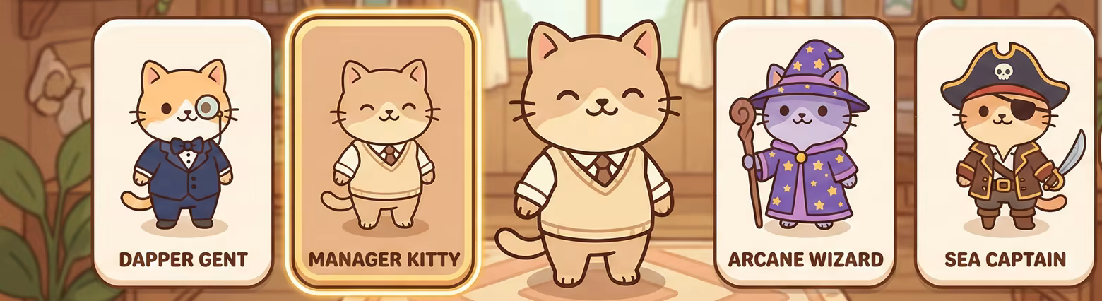 Choose from over 25 skins for your manager cat, customize your store's floor, and decorate with various items.