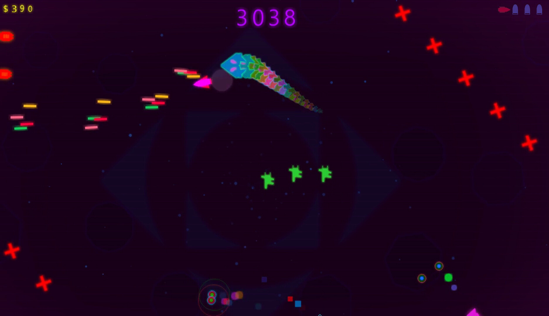 Neon Proxima is a top down arena shooter/shoot em up. The game has, as the name suggest, neon aesthetics and the player ship shoots rainbow lasers. Your goal is to destroy all enemies on screen and collect coins to upgrade your ship. In the end it's about having the best score in the leaderboards.