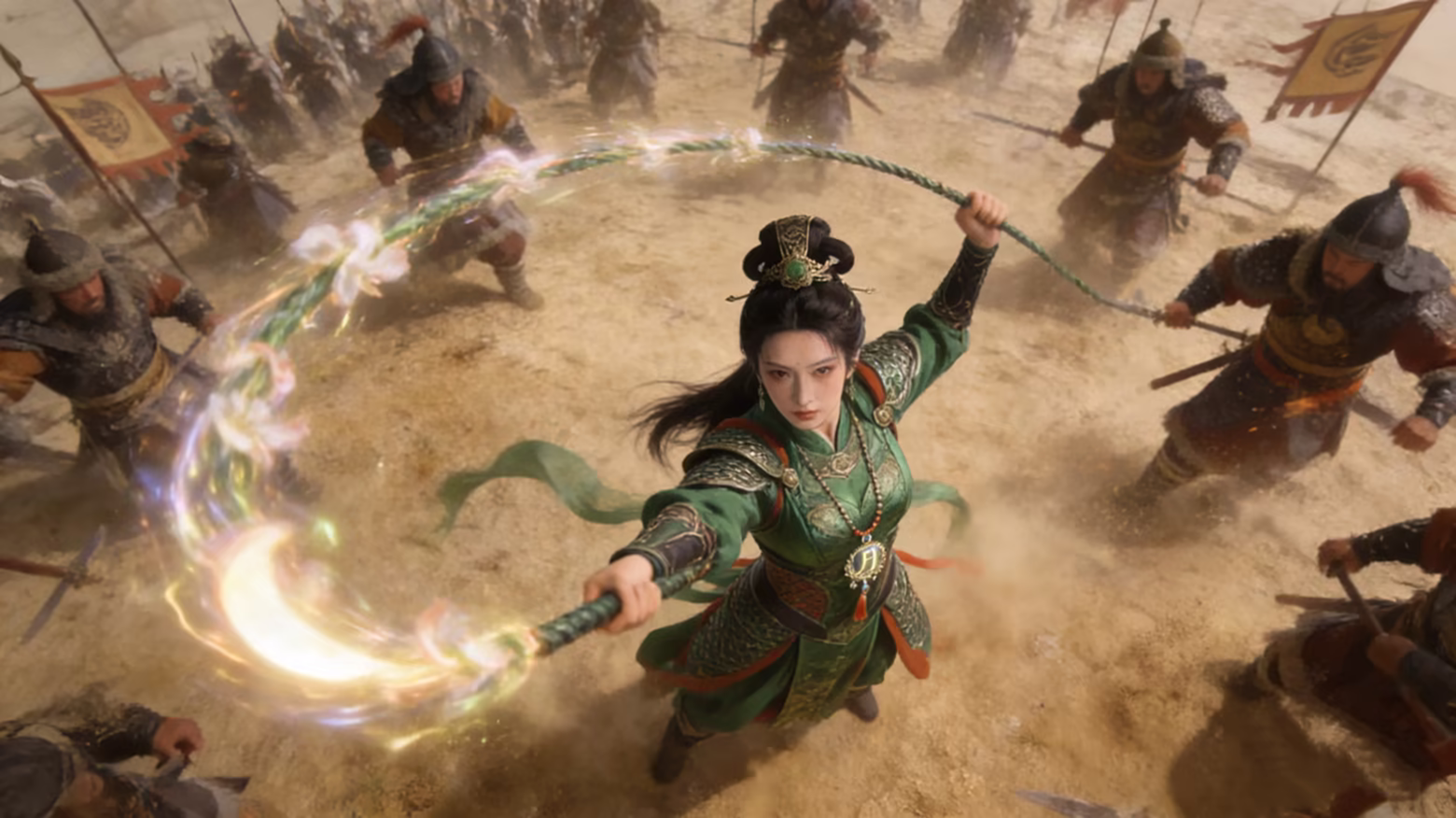 此鞭舞动如飞花,追逐着月光,柔美而灵动,倚华挥动此鞭令敌方眼花缭乱,破绽百出!