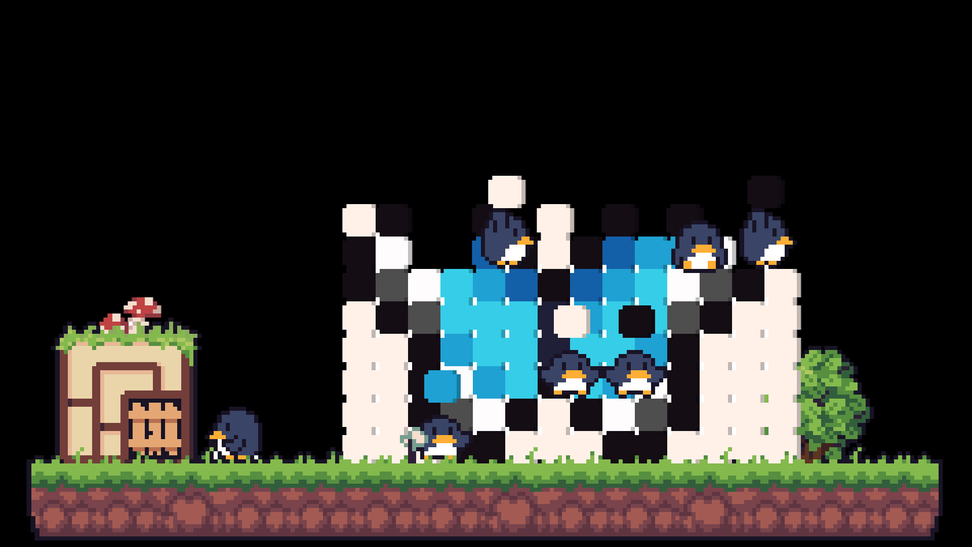 Show your creativity with a simple pixel art drawing tool. Draw your own artwork and watch as the penguins slowly build it block by block!