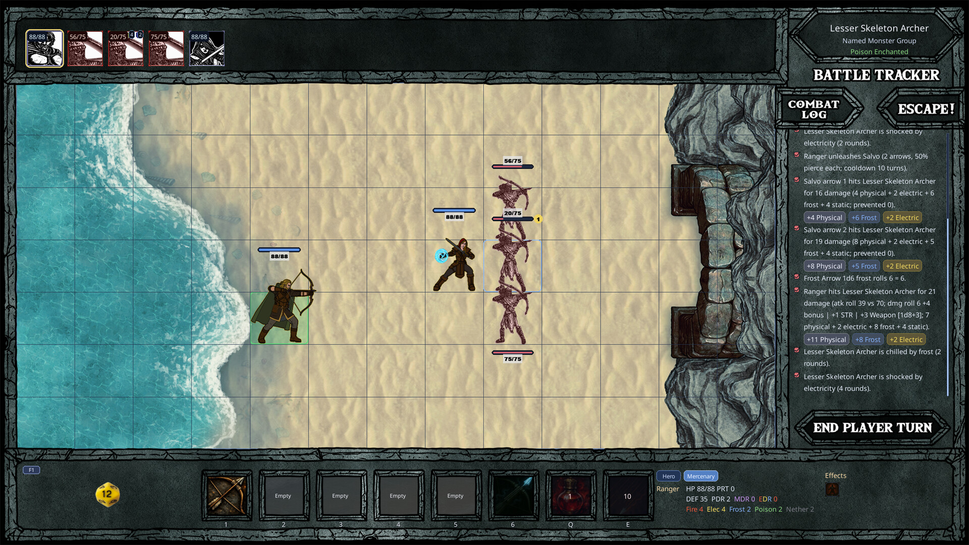 • Turn-based tactical combat on a grid where movement, range, and turn order matter