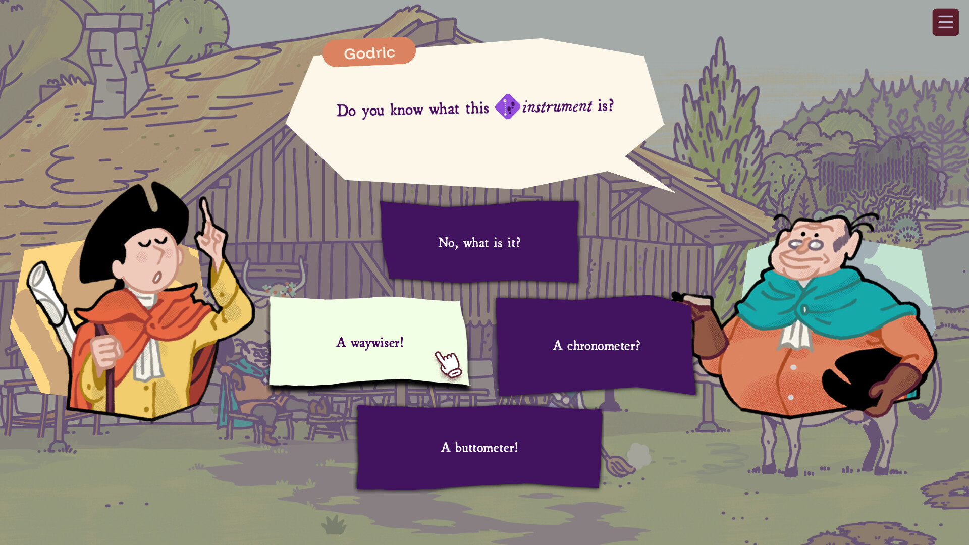 • Learn how to use two 18th century cartography tools from your master, Godric: the waywiser and the graphometer.
