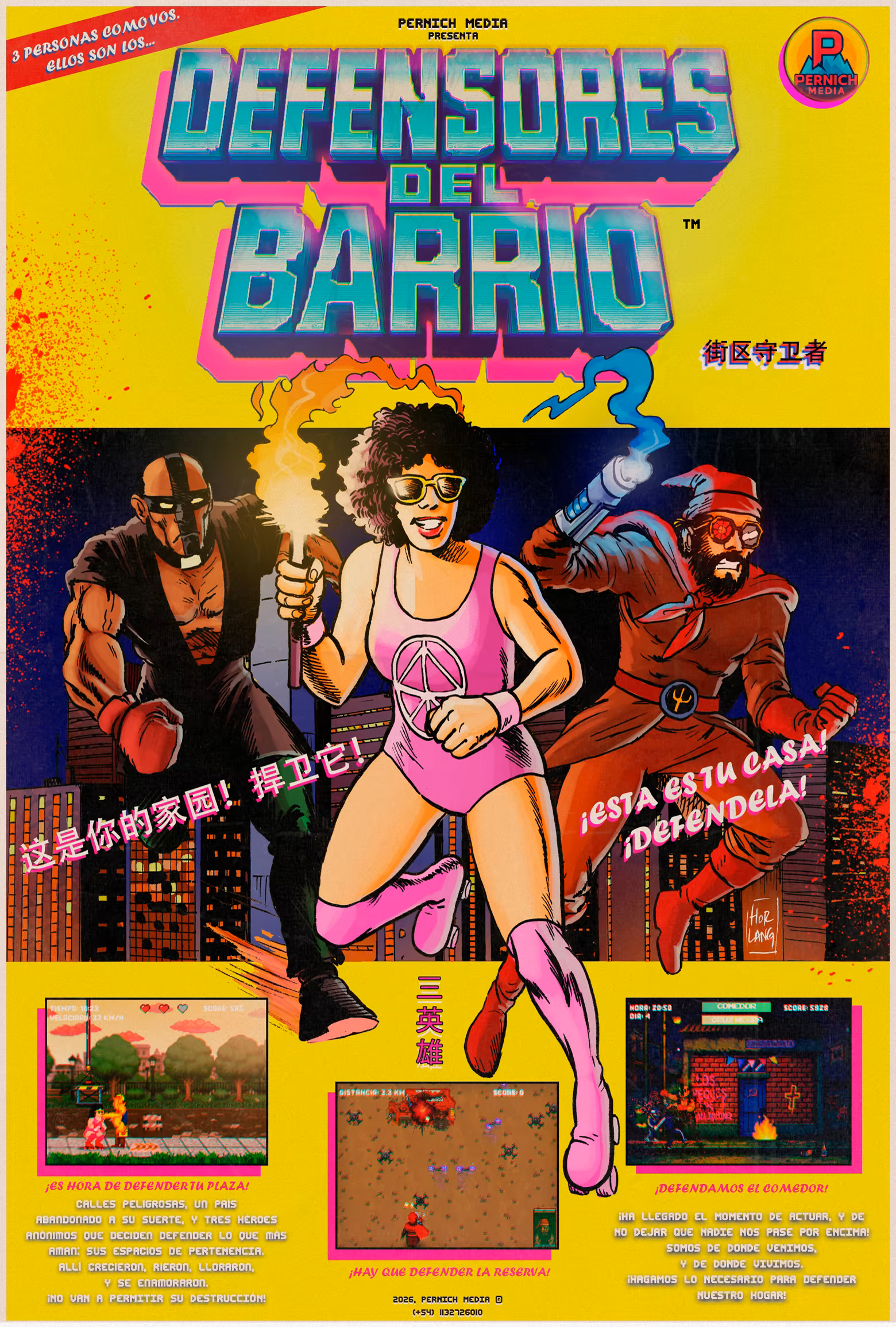 Un juego arcade con tres minijuegos que siguen a tres héroes argentinos comprometidos con causas justas. Desde la defensa de un comedor infantil hasta la protección del medioambiente y la lucha por el espacio público, cada héroe enfrenta poderosos enemigos en escenarios únicos.