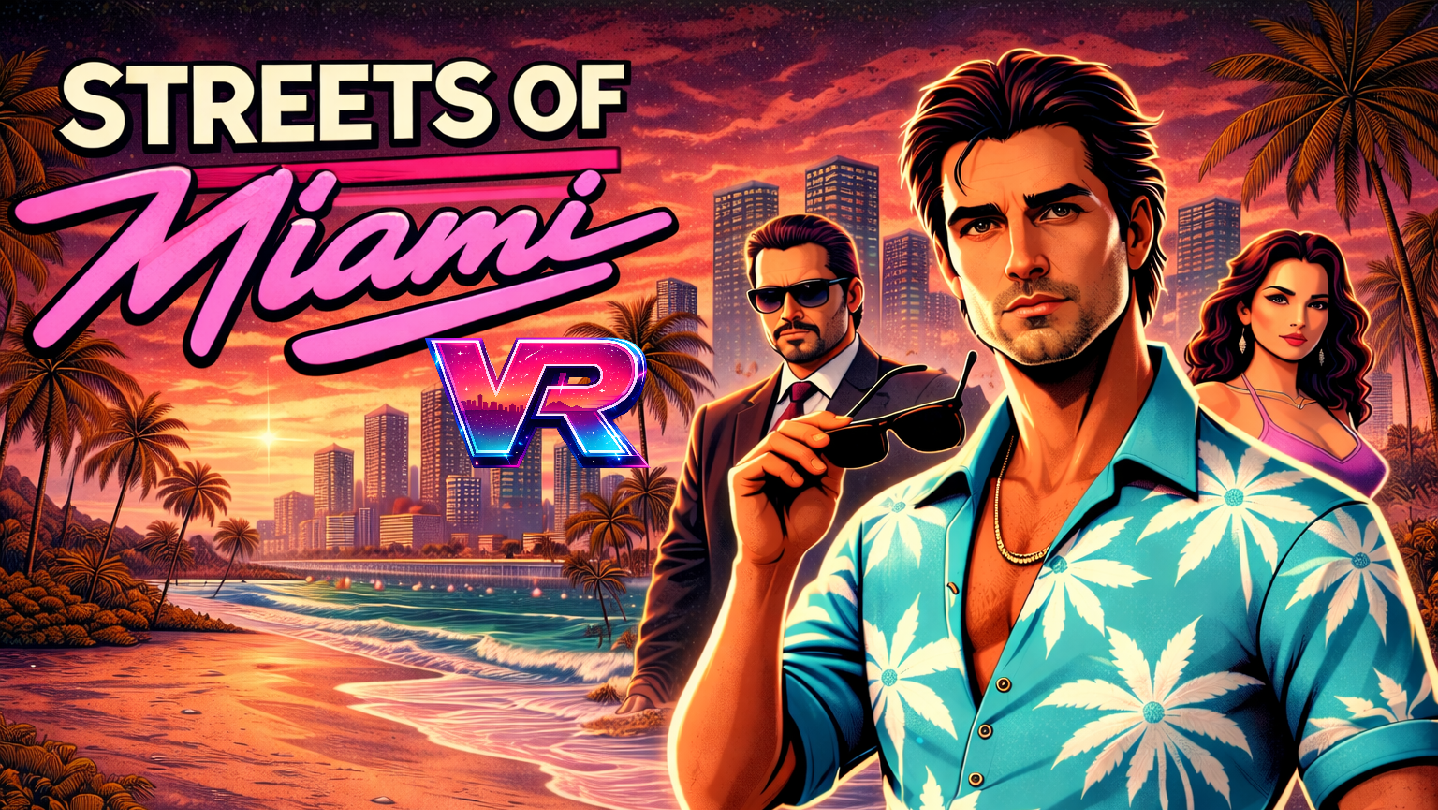 Miami Beach, 1984. Neon heat, dirty money, and a Vice strip that never sleeps. Streets of Miami VR is an open-world VR crime sandbox built around street-level immersion, physical interaction, and the feeling that anything can pop off at any moment. You’re not looking down at Miami—you’re inside it, dealing with people face-to-face and handling problems up close.