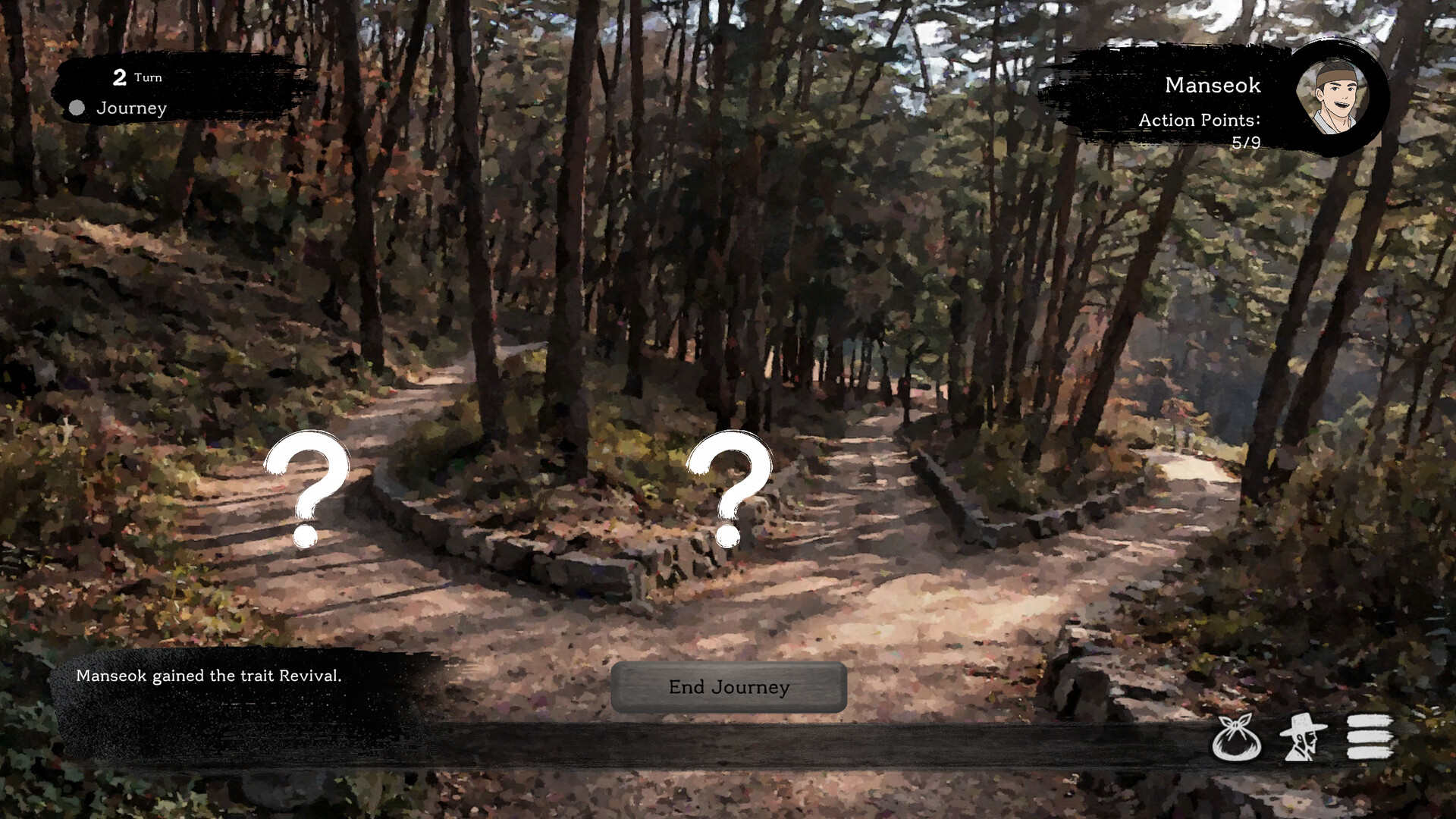 A Joseon-era survival strategy game where even goodwill becomes a resource. Manage companions and scarce supplies during a great famine. Every crucial decision is resolved by dice. There are no perfect choices—only surviving today and preparing for tomorrow.