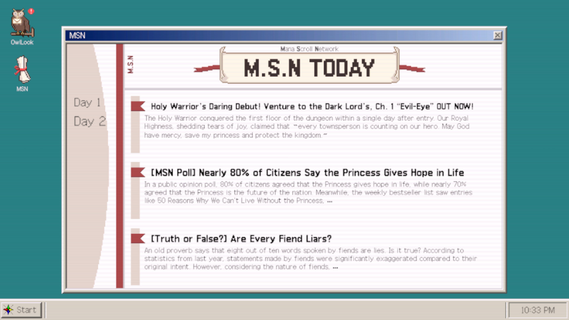 Enjoy the stark contrast between the warrior’s shameless request emails and the hero-worshipping news that pops up on your desktop.
