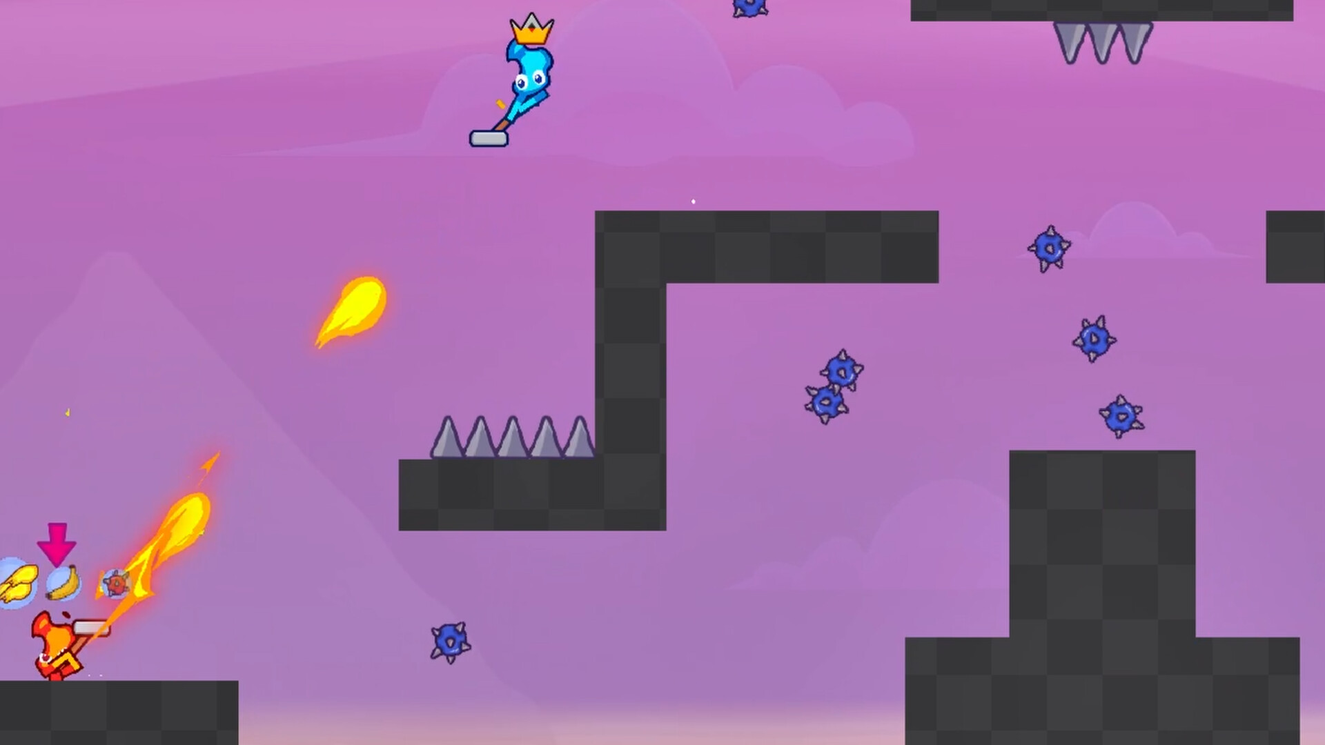 Take control of a little fireball creature that can only move by swinging around a hammer and pushing off platforms. Movement is key in this game as you try to be the first one to pick up abilities, capture objectives and dodge incoming attacks.