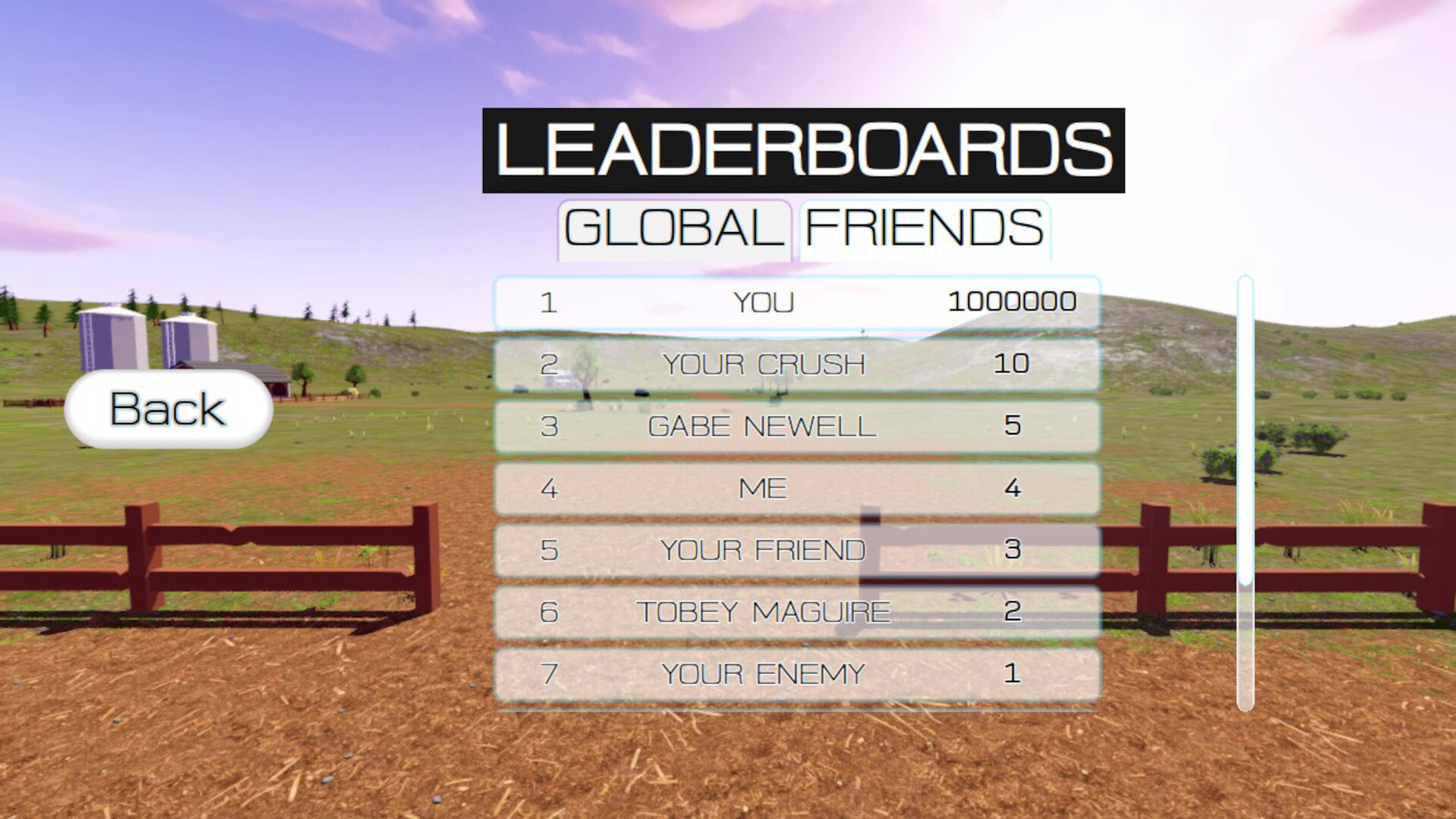 Whoever told you Hole Your Horses was a friendly, relaxed sport lied to you. This is a cut throat business, and the only way to prove yourself is on top of the Leaderboards. The Global Leaderboard may be hard to crack, but at the very least try and beat your friends and then make fun of them. Victory is nearly yours.