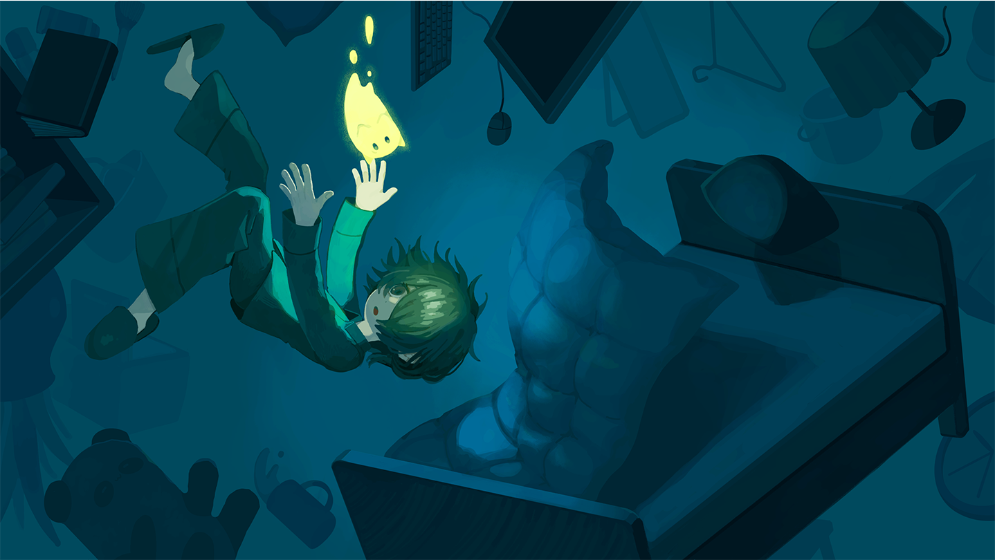 不安に沈む夜の部屋を歩き、小さな“光の生物”とともに、少しずつ心をほどいていく―――。