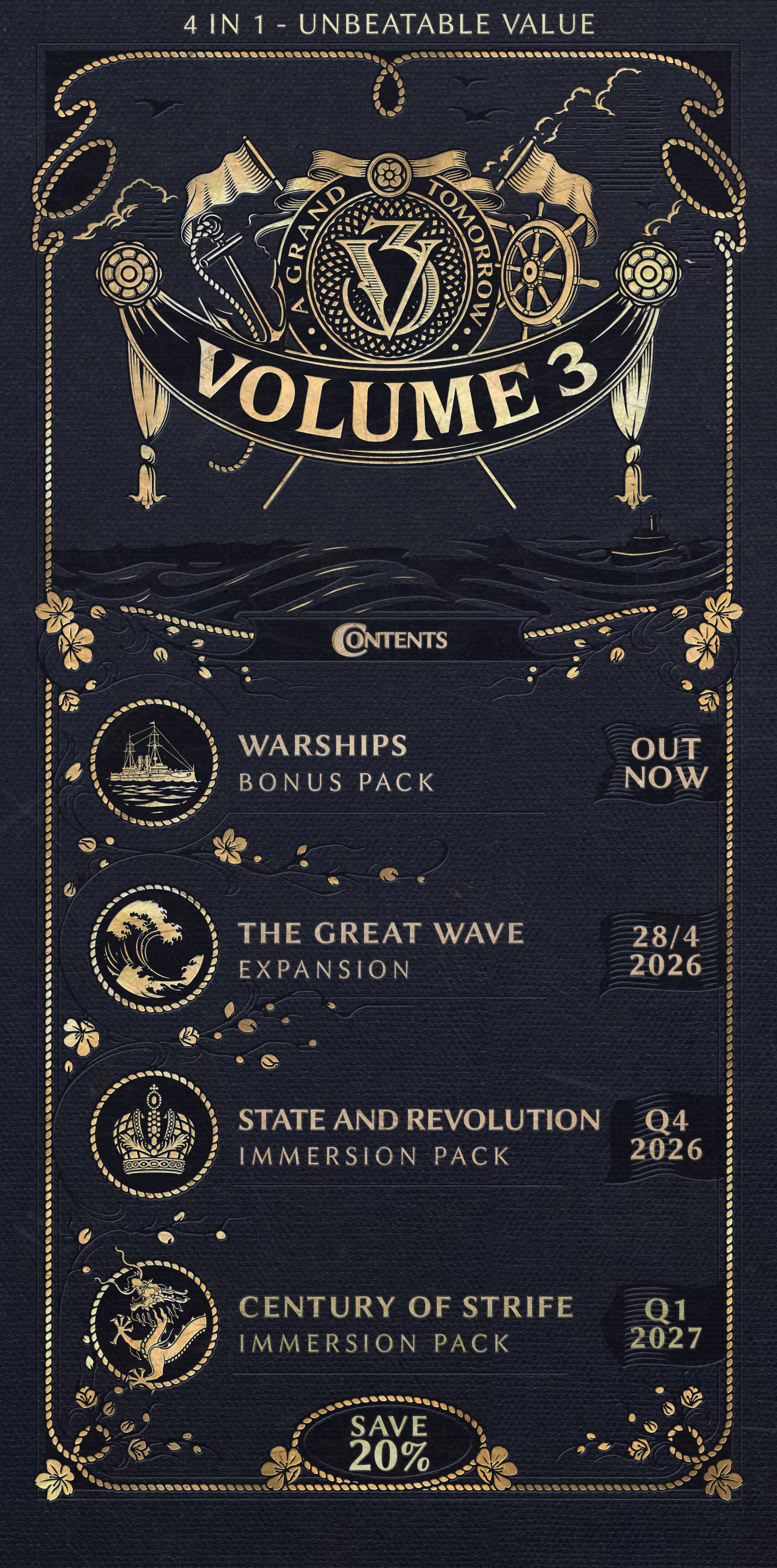Volume 3 is the best way to delve into new content for Victoria 3 - as it comes with a hefty discount on all included items and offers a special bonus pack exclusive to owners of Volume 3.