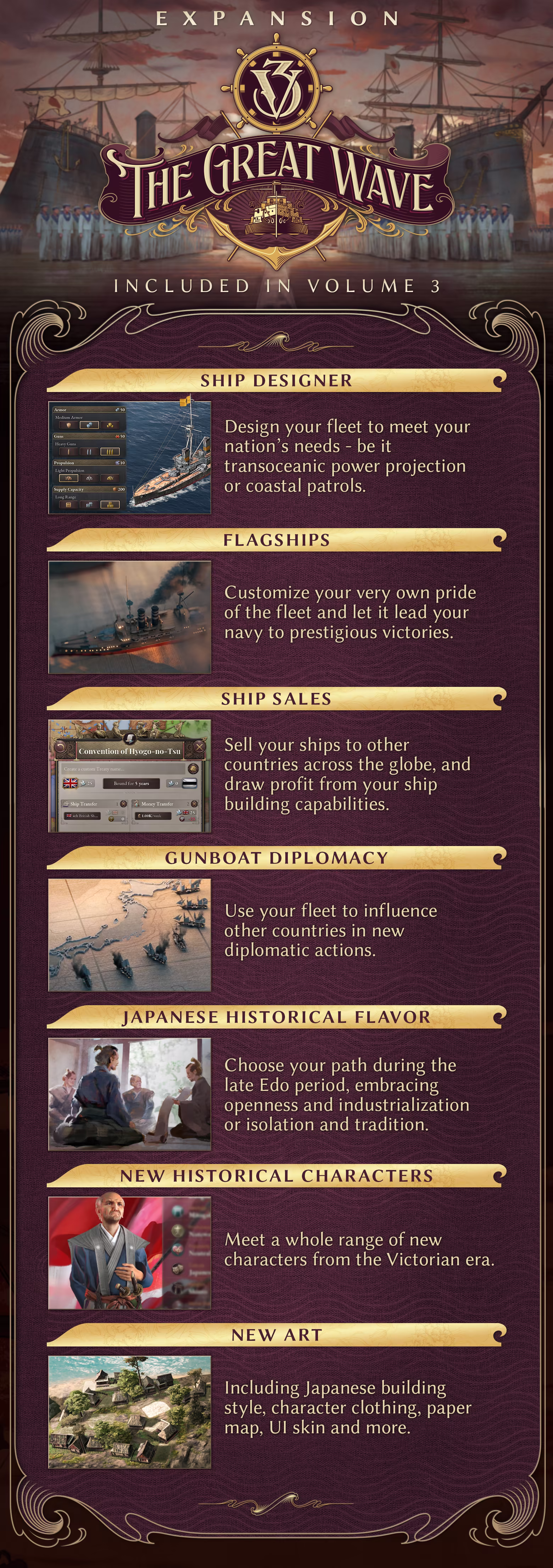 Guide Japan through the last days of the Shogunate, navigating turmoil at home and pressure from abroad as you forge a modern power ready to challenge the greatest empires of the day.