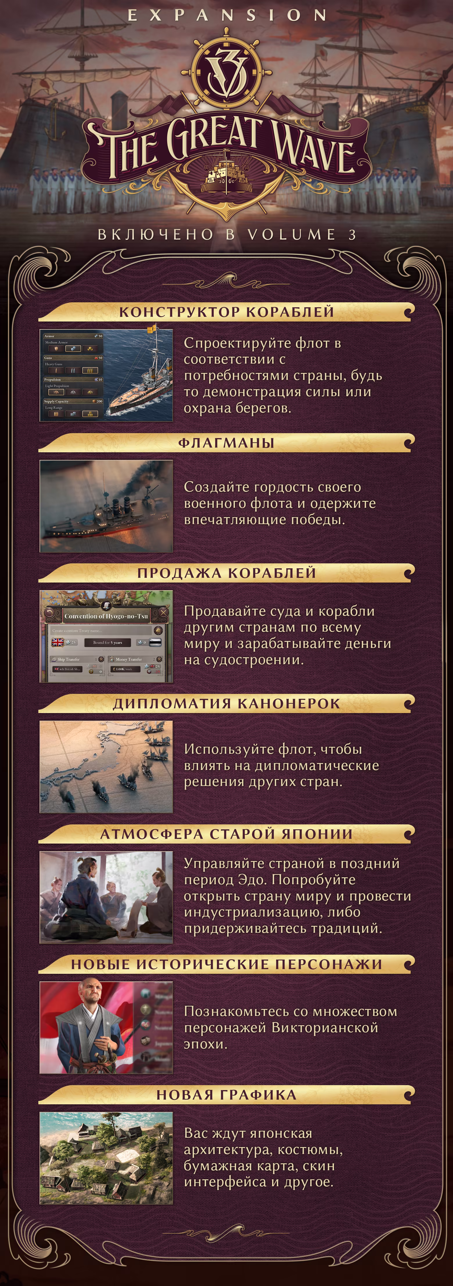 В набор Victoria 3: The Great Wave входит следующий контент:
