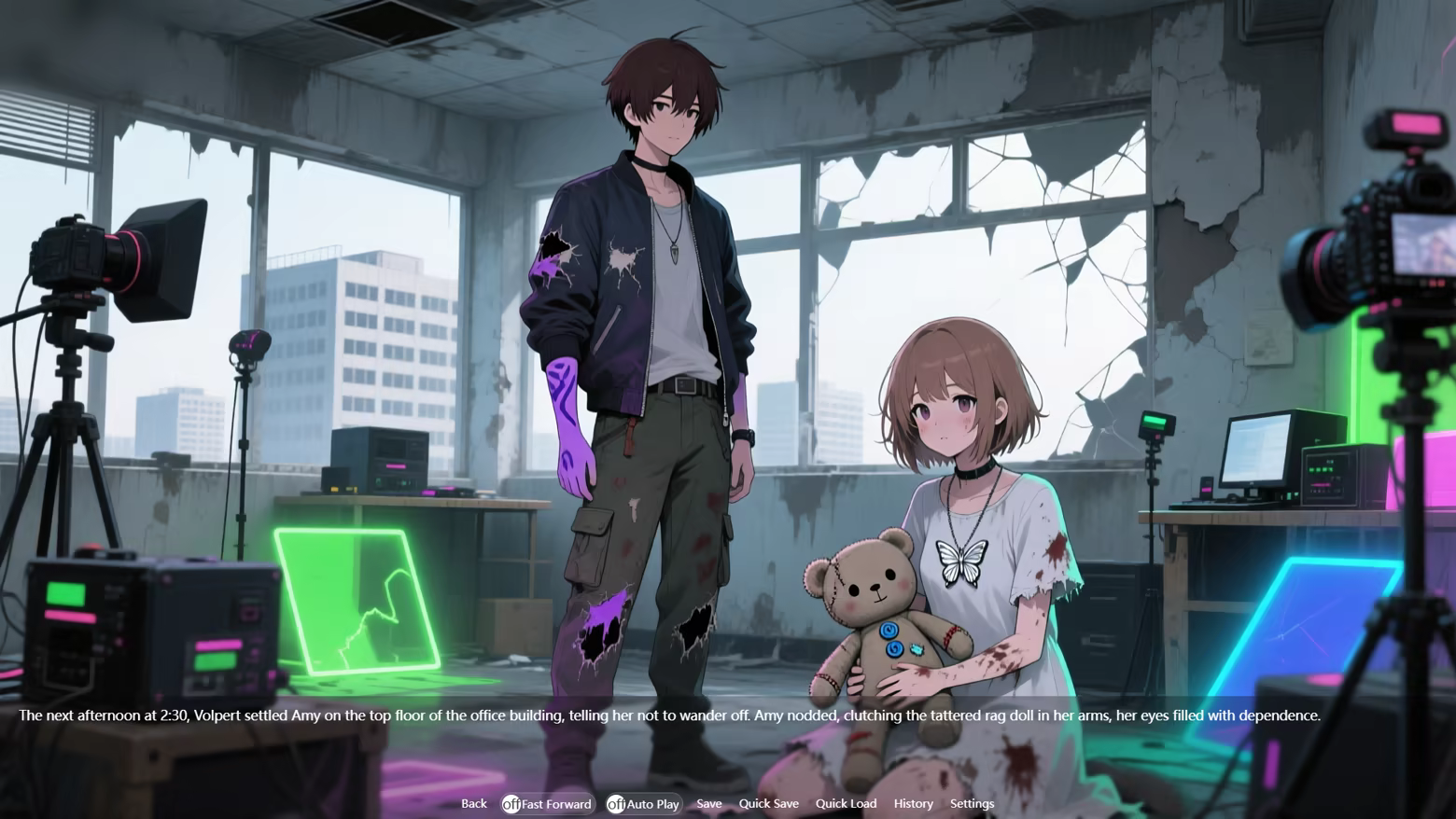 • In 2027, a gray-black dust shrouds the ruined city, and the plague of oblivion has raged for eighteen months. Survivors must rely on livestreaming to garner attention and slow their memory loss. You are Volpert, a second-tier livestreamer, your popularity dwindling, your memory index reduced to only 37%, and you could become a walking corpse at any moment. During an adventure, you encounter a severely infected, amnesiac girl. Her appearance causes a surge in viewership for your livestream, but it also draws you into a battle for viewership among top livestreamers, a dark conspiracy within the military, and the apocalyptic judgment of the infected leader. Lies and truth intertwine, survival and conscience clash. Will you succumb to the allure of false popularity and survive, or will you tear down the mask of revelry and seek redemption?