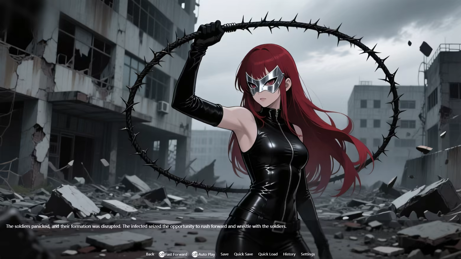 • Infected Leader Beth: A cold and powerful post-apocalyptic queen. Her gaze is constant throughout the story. Confronting her will uncover the source of the plague. Interactions are filled with danger and the possibility of redemption.