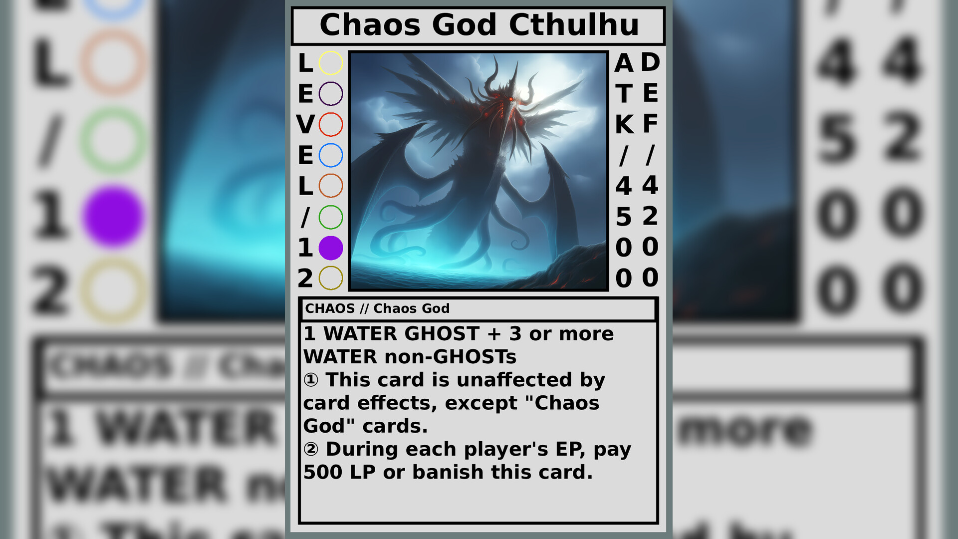 Chaos - This format gives each player a Main Deck of 45 random cards and an Extra Deck of 15 random cards.