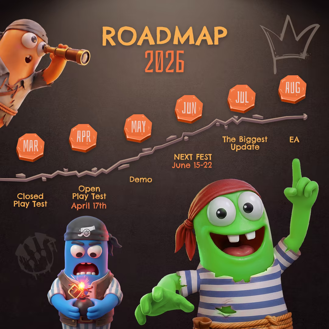 Last Pirates: Die Together is an online co-op horror experience filled with chaos, monsters, and LOTS OF BOOTY! You and your crew will use your unusually stretchy arms to gather as much loot as you can for your captain. Be mindful of your surroundings though. There are others who mean to keep the treasure for themselves.
