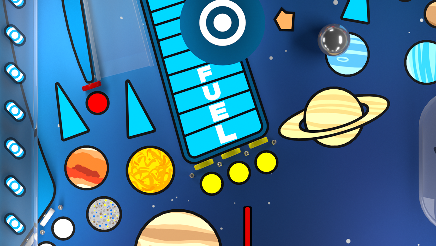 Pinball game with clean retro sci-fi design.