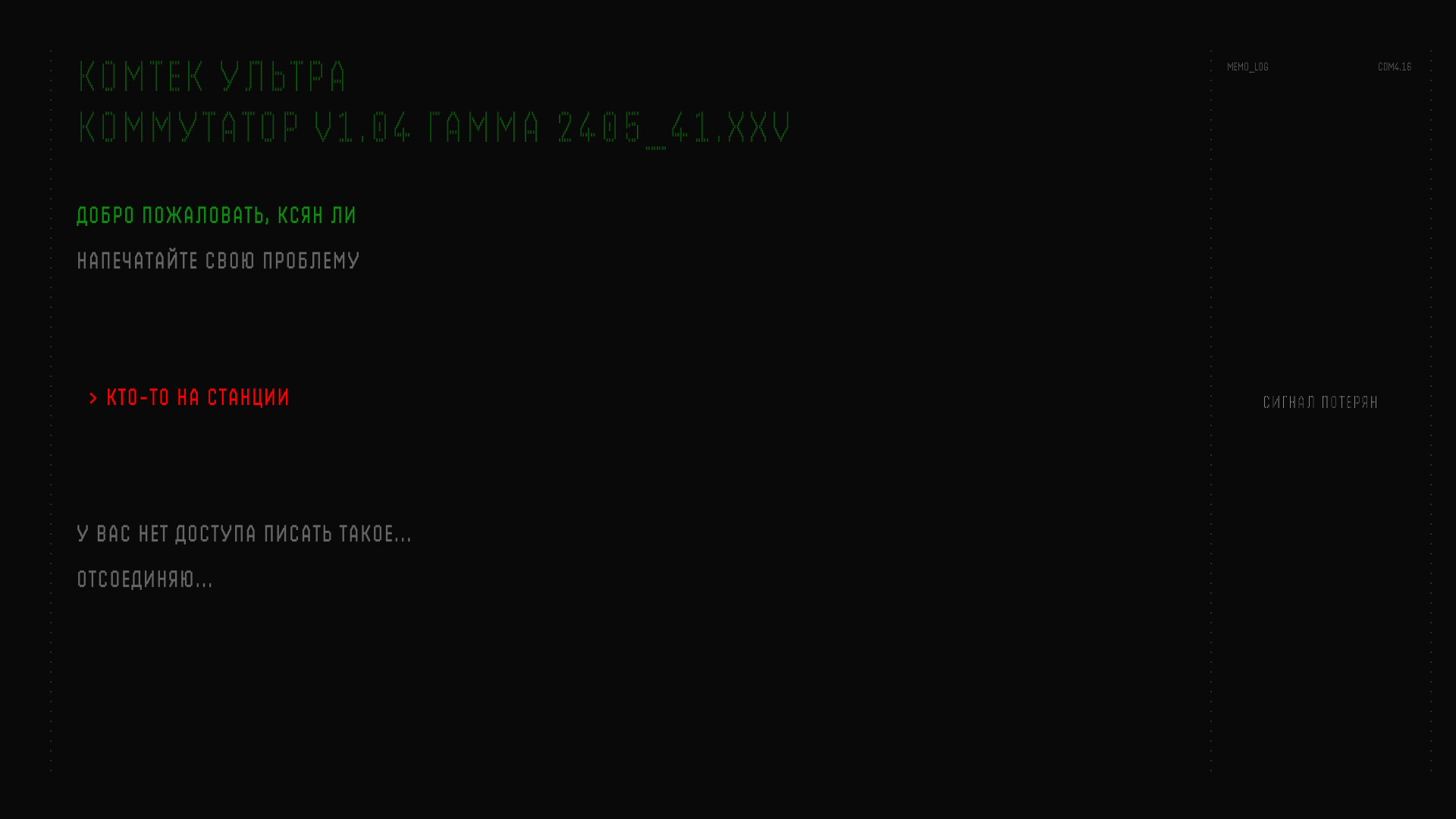 • Нарратив через код: История раскрывается через обрывки данных и системные ошибки.