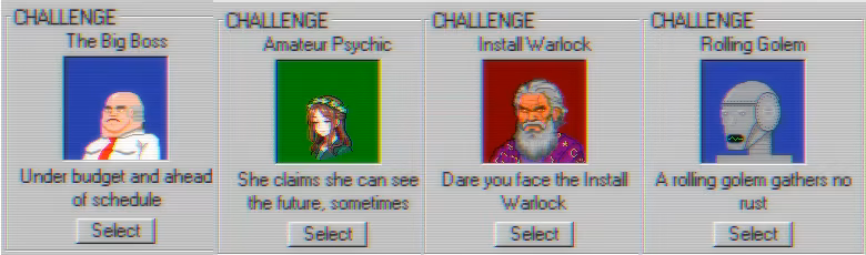 So what's the point of all this deck building and Software installing? To play Video Poker, of course! But all these new cards and abilities wouldn't be fun to play with without an equal challenge to overcome. Fight your way through as many unique Challenges as possible, as they do their best to slow you down, take your credits and send you back to the square one.