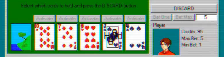A retro-style, rogue-like deck-builder where you play Video Poker. Collect unique cards, download powerful software and merge your cards to unlock new synergies and craft the deck you need to conquer the many challenges of Video Poker 95!