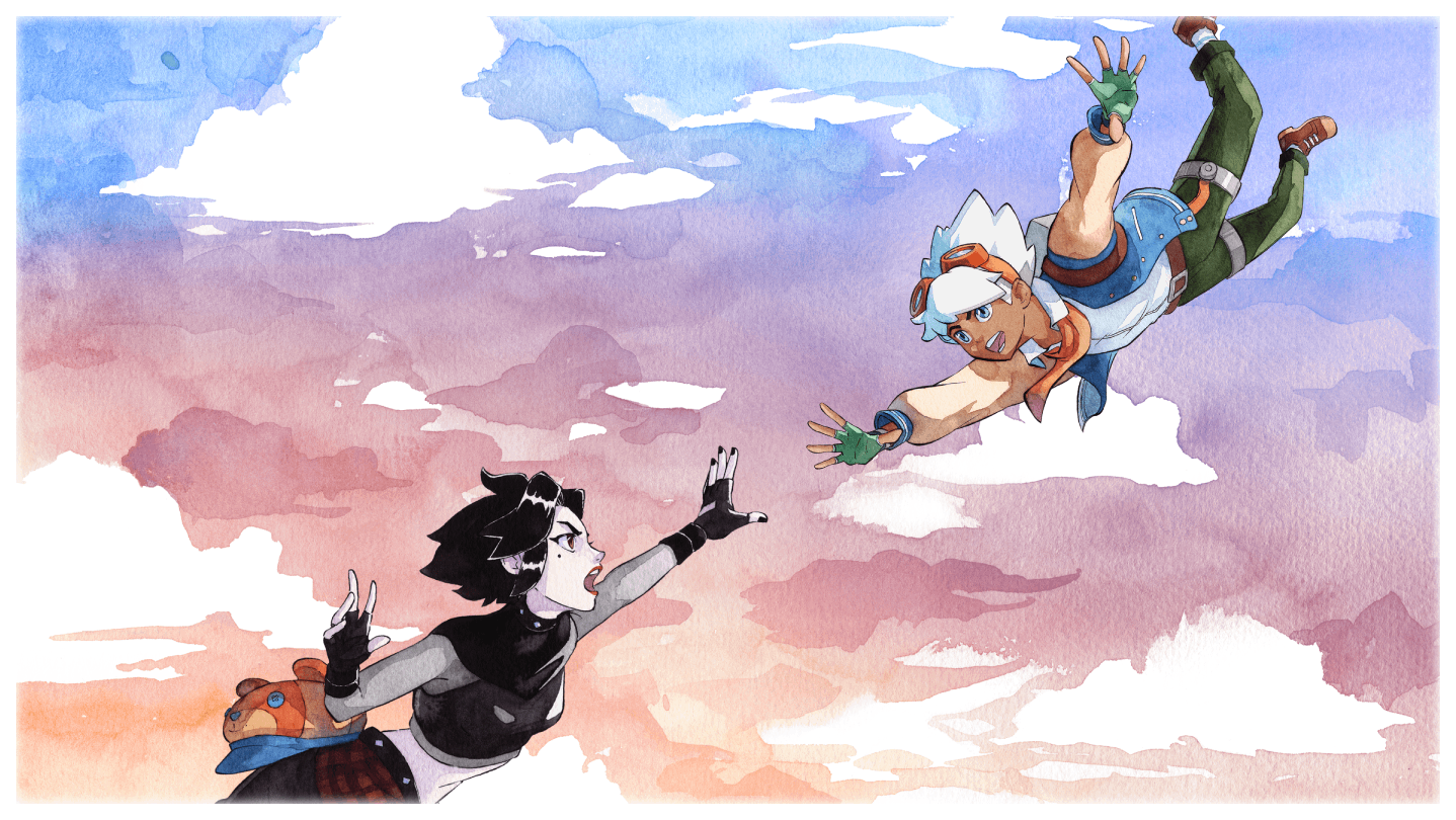 • A stylized watercolor world
