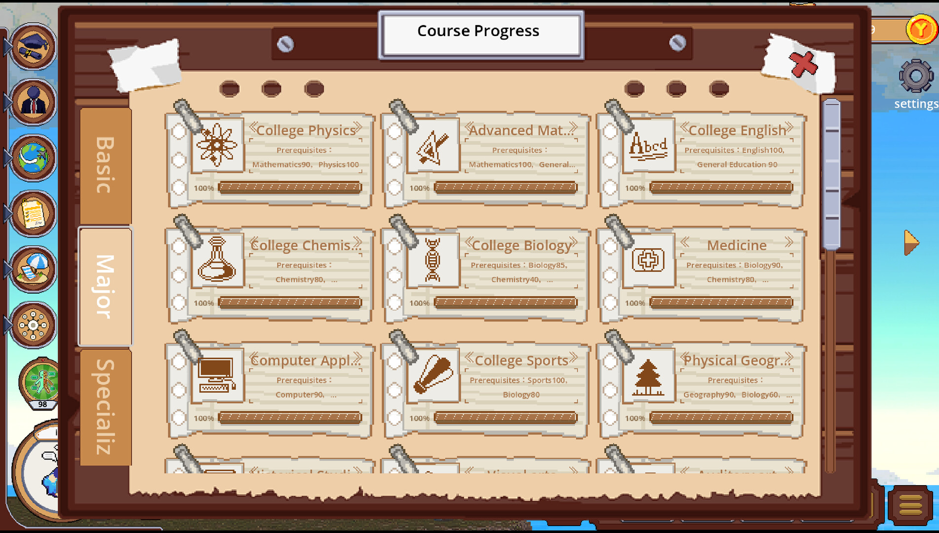 Choose the courses you like to study to lay a foundation for your future work needs; meanwhile, there is a chance to trigger text-based quizzes, item drops, and unexpected events. Answering correctly can earn you additional knowledge points.