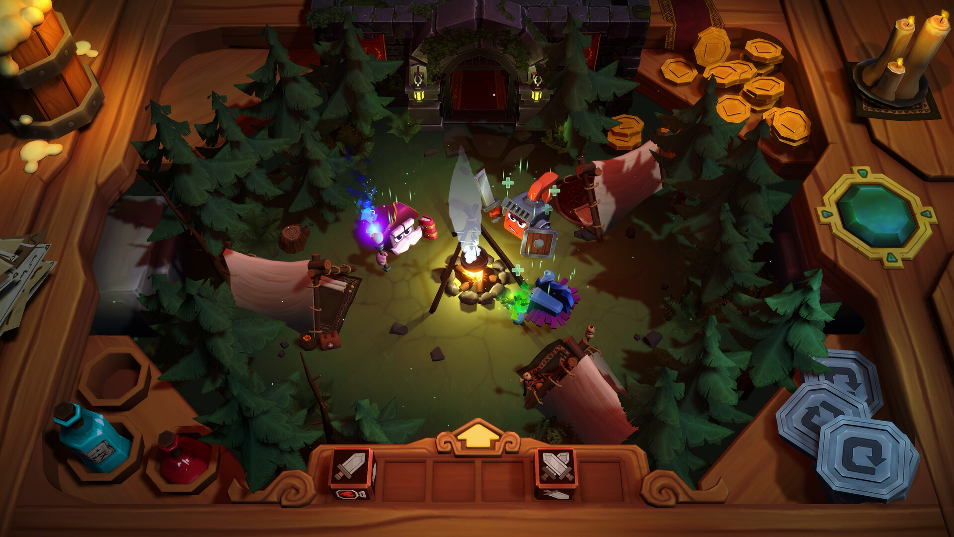 • Potions & Table Artifacts – Hurl potions mid-fight, trigger catapults, beer kegs, and mimics placed right on the table. 3 potion slots, 12+ interactive artifacts to discover.