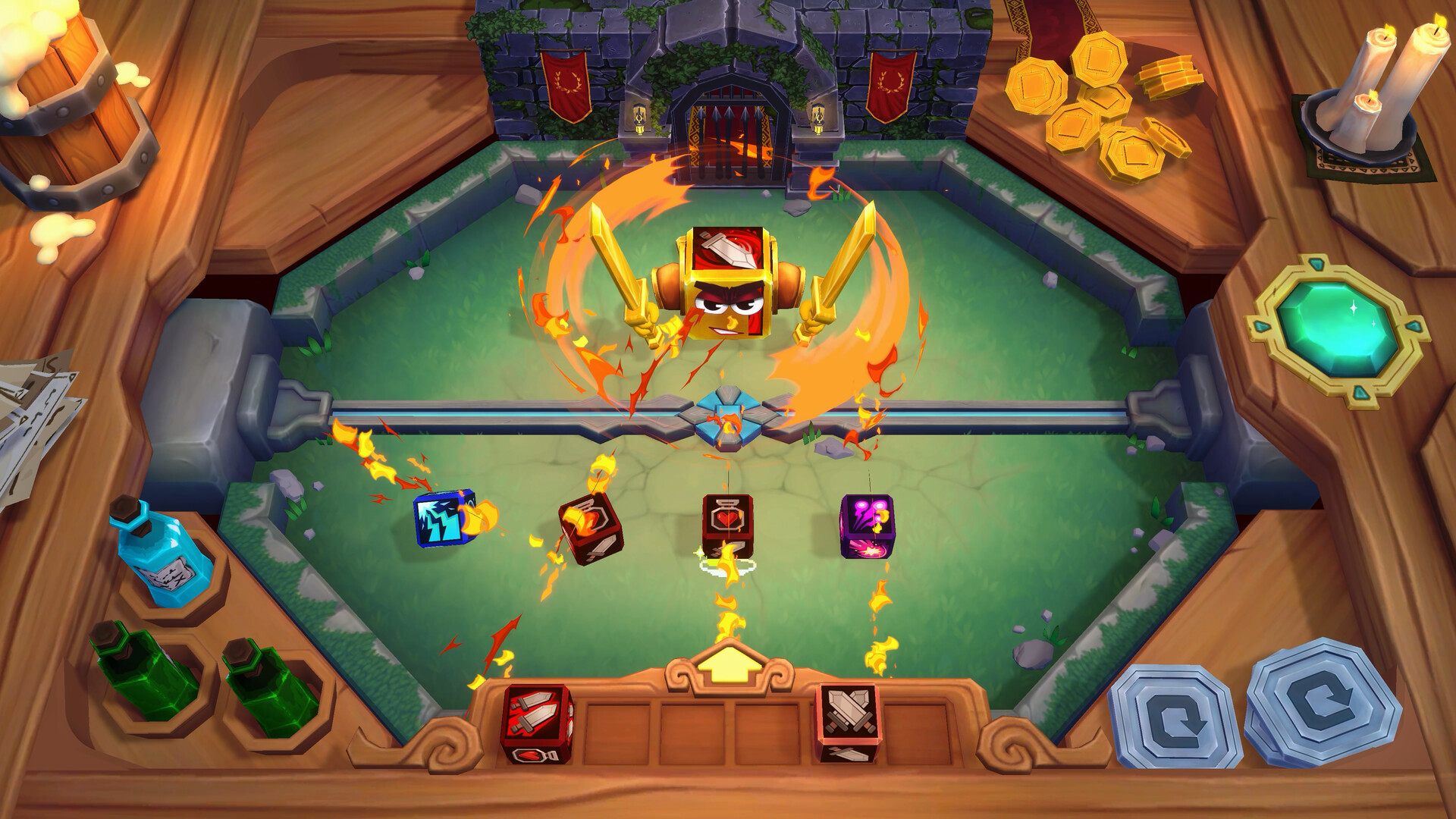 • Potions & Table Artifacts – Hurl potions mid-fight, trigger catapults, beer kegs, and mimics placed right on the table. 3 potion slots, 12+ interactive artifacts to discover.