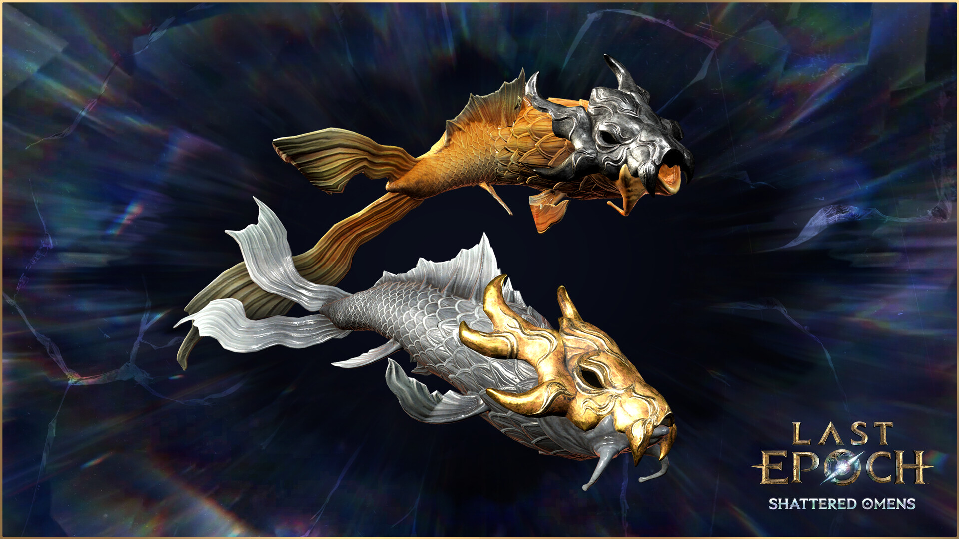 A pair of celestial koi like companions, one radiant and one shadowed, weaving around you in a slow orbit that mirrors the dance of sun and moon.