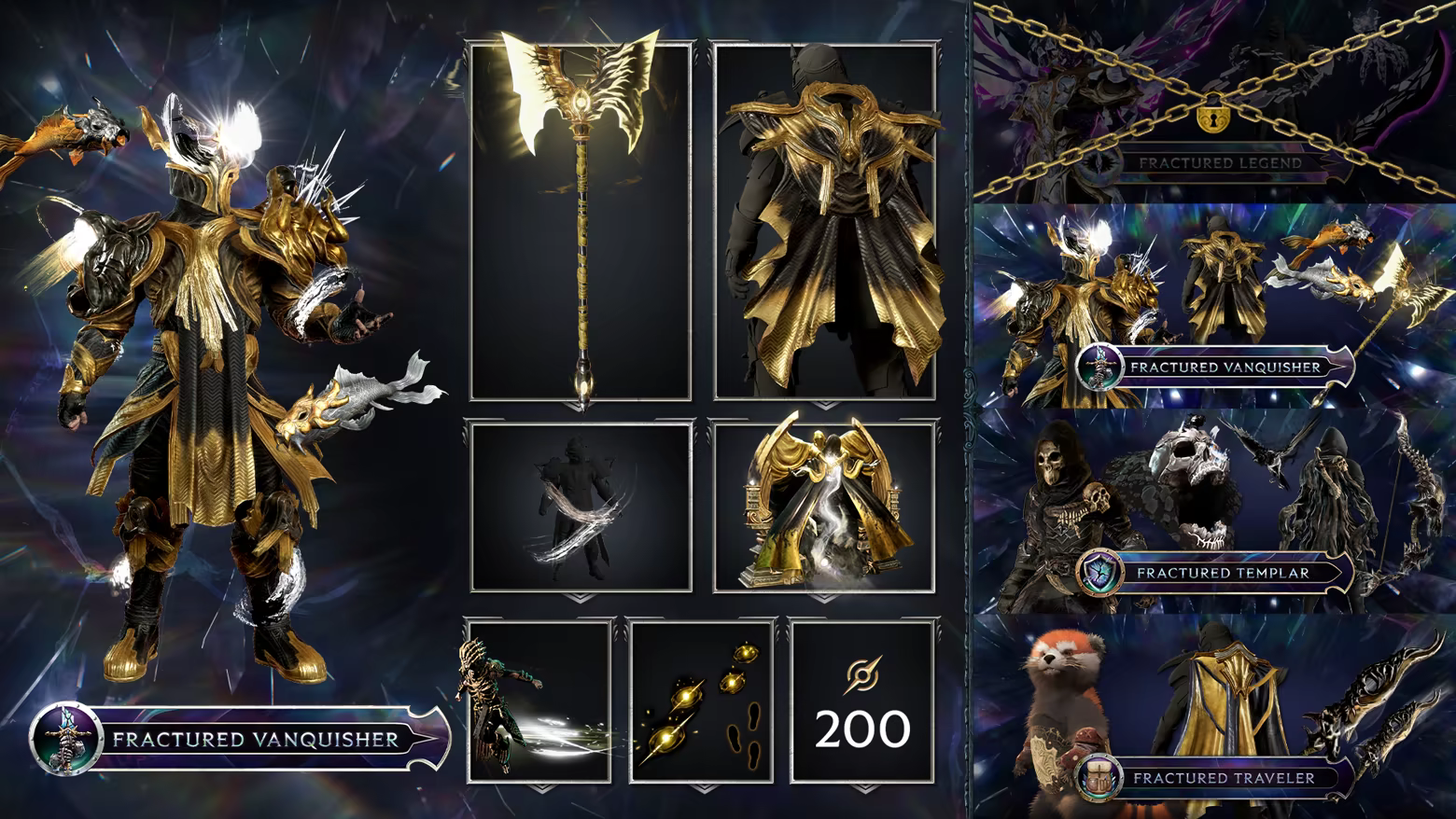 This pack contains exclusive cosmetic only items and includes all cosmetic items from the Fractured Traveler and Fractured Templar packs, along with additional cosmetic only items that do not affect gameplay or power.