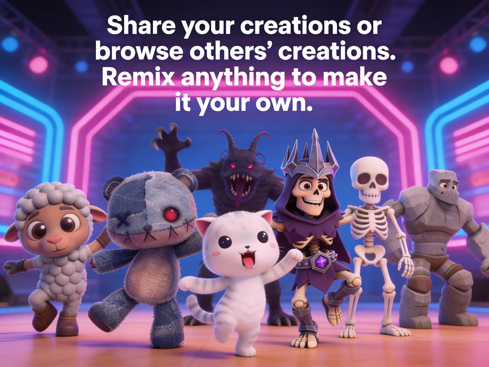 Your feel-good choreography playground. Pick a song, build a routine, and bring any character to life with dance moves and stages in every vibe. Share your creations, remix the community’s best, and keep evolving your style. Your imagination is the limit!